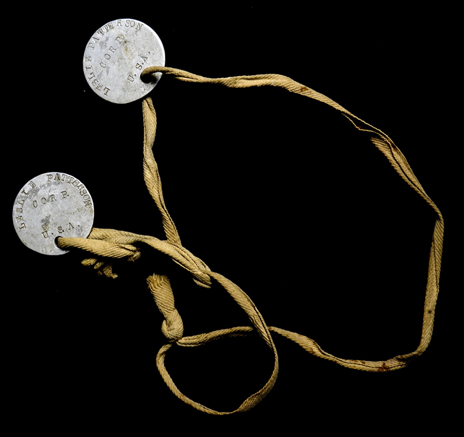 | Description | Aluminum identity tags issued to soldiers in the American Expeditionary Forces. Soldiers wore these "dogtags" around their neck with a cloth cord. If a soldier died in service, one tag remained with the body while the other was sent to headquarters for proper identification. |