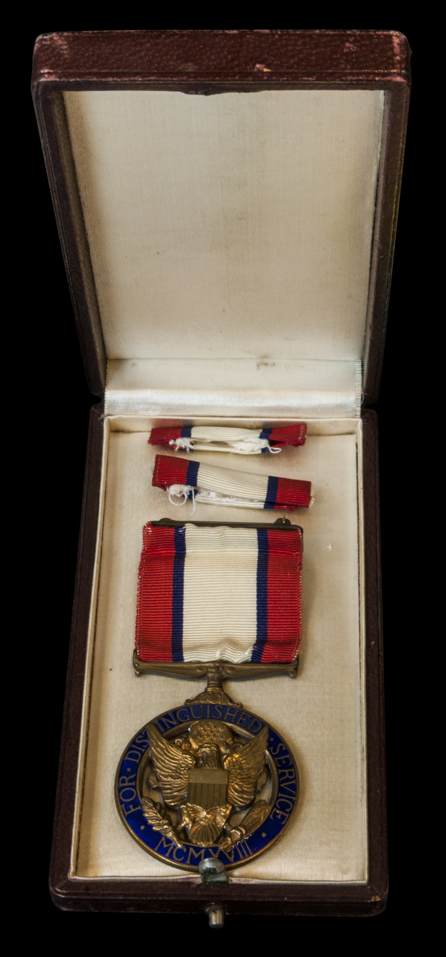 | Description | Distinguished Service Medal presented to Colonel Frank M. Rumbold for meritorious service during World War I. As an officer in the Missouri National Guard, Rumbold commanded the 128th Field Artillery, 35th Division. He was slightly wounded during the Battle of the Argonne Forest on September 30, 1918. Colonel Rumbold earned the medal for his work expanding the National Guard during the war and cooperating with the Regular Army. |