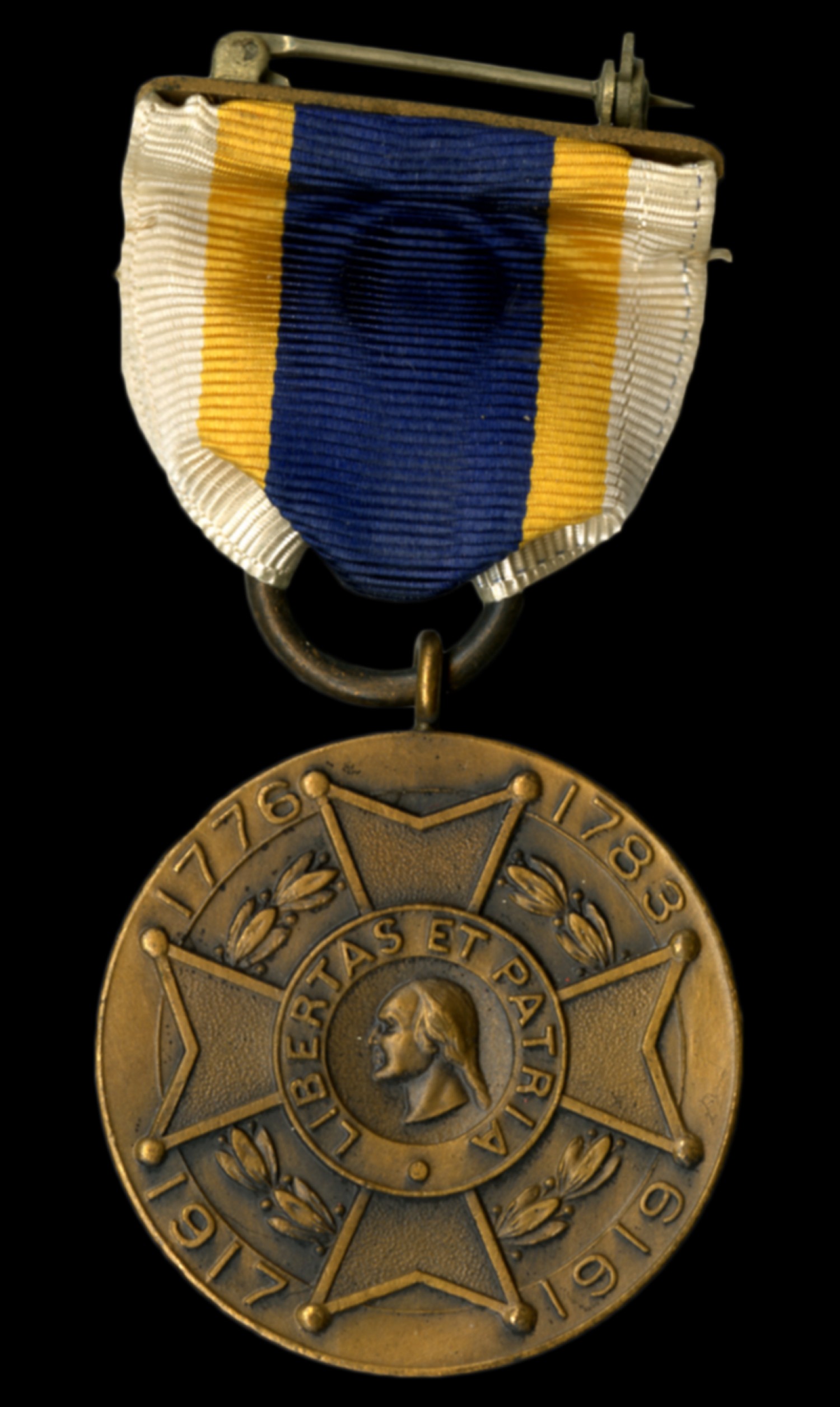| Description | Medal issued to Lieutenant W.W. Fry Jr. by the Sons of the American Revolution. Medals like these were issued to members of the Sons of the American Revolution organization who served in WWI. |