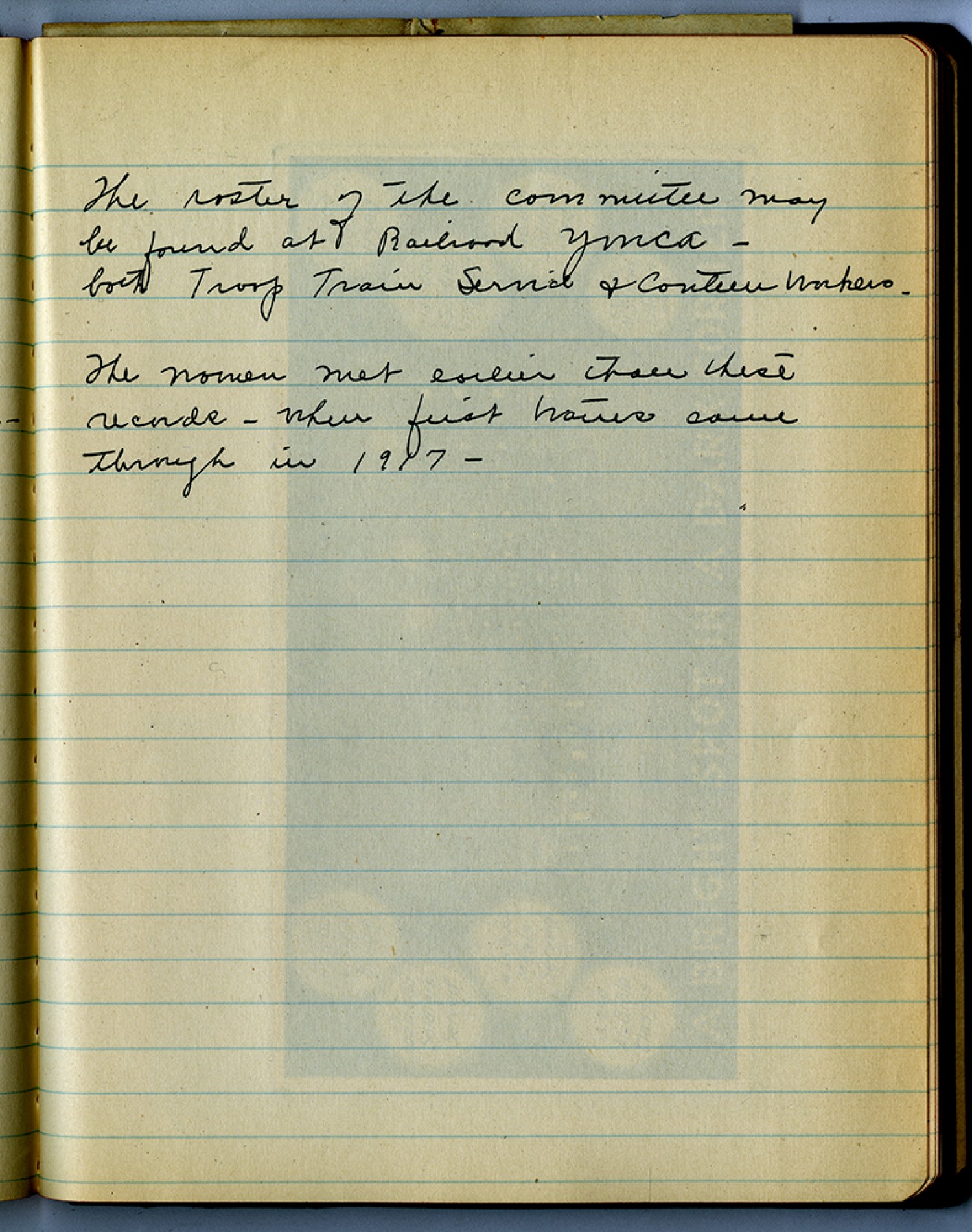 The roster of the committee may be found at Railroad YMCA – both Troop Train Service & Canteen workers. The women met earlier than these records – when first waves came through in 1917 -