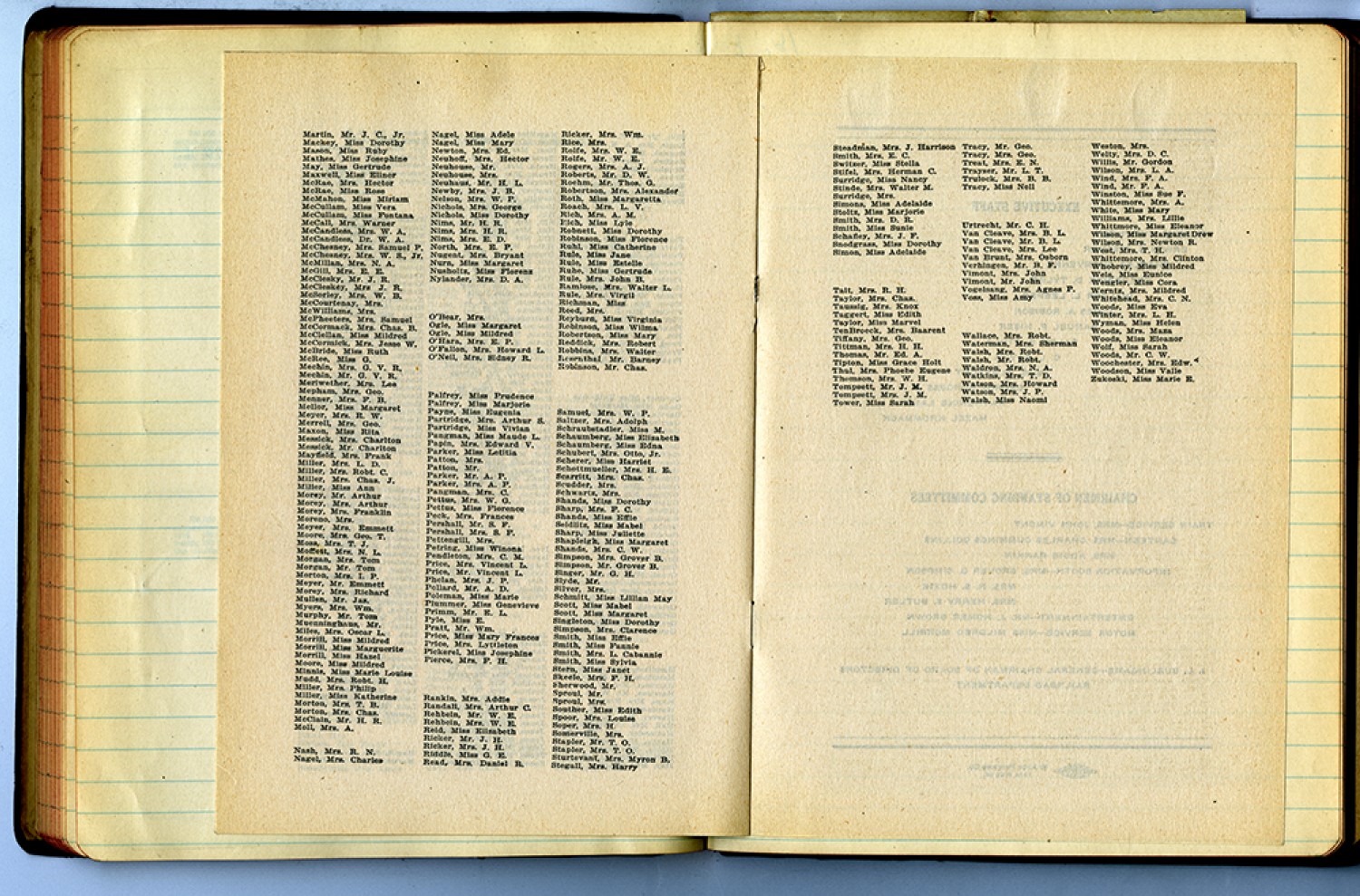 [program] Martin, Mr. J.C., Jr. Mackey, Miss Dorothy Mason, Miss Ruby Mathes, Miss Josephine May, Miss Gertrude Maxwell, Miss Elinoe MacRae, Mrs. Hector McRae, Miss Rose McMahon, Miss Miriam McCullam, Miss Vera McCullam, Miss Fontana McCall, Mrs. Warner, McCandklless, Mrs. W.A. Candless, Dr. W.A. McChesney, Mrs. Samuel P. McChesney, Mrs. W.S., Jr. McMillan, Mrs. N.A. McGill, Mrs. E.E. McCleskey, Mr. J.R. McCleskey, Mrs. J.R. McSorlry, Mrs. W.B. McCortenay, Mrs. McWilliams, Mrs. McPheeters, Mrs. Samuel McCormack, Mrs.Chas B. McCellan, Miss Mildred MCCormick, Mrs. Jesse W. McBride, Miss Rught McRee, Miss G. Mechin, Mrs. G.V.R. Mechin, Mr. G.V.R. Meriweather, Mrs.Lee Mepham, Mrs. Geo. Menner, Mrs.F.B. Mellor, Miss Margaret Meyer, Mrs. R.W. Merrell, Mrs.Geo Maxon, Miss Rita Messick, Mrs. Charlton Mayfield, Mrs. Frank Miller, Mrs. L.D. Miller, Mrs. Robt. C. Miller, Mrs. Chas. J. Miller, Miss Ann Morey, Mr . Arthur Morey, Mrs. Arthur Morey, Mrs. Franklin Moreno, Mrs. Meyer, Mrs. Emmett Moore, Mrs. Geo T. Moss, Mrs. T.J. Moffett, Mrs. N.L. Morgan, Mrs. Tome Morgon Mr. Tom Morton, Mrs. I.P. Meyer, Mr. Emmett Morey, Mrs. Richard Mullen, Mr. Jas. Meyers, Mrs. Wm. Murphy, Mr. Tom Muenninghaus, Mr. Miles, Mrs. Oscar L. Morrill, Miss Mildred Minnis, Miss Marie Louise Mudd, Mrs. Robt. H. Miller, Mrs. Philip Miller, Miss Katherine, Morton,Mrs. T.B. Morton. Mrs. Chas. McClain, Mr. H. R. Moll, Mrs. A. Nash, Mrs. R.N. Nagel, Mrs. Charles Nagel, Miss Adele Nagel, Miss Mary Newton, Mrs. Ed. Neuhoff, Mrs. Hector Neuhouse, Mr. Neuhouse, Mrs. Neuhaus, Mr. H.L. Newby, Mrs. J.B. Nelson, Mrs. W.P. Nichols, Mrs. George Nichols, Miss Dorothy Nims, Mr. H. R. Nims, Mrs. H.R. Nims, Mrs. E.D. North, Mrs. E.P. Nugent, Mrs. Bryant Nurn, Miss Margaret Nusholtz, Miss Florenz Nylander, Mrs. D.A. O’Bear, Mrs. Ogle, Miss Margaret Ogle, Miss Mildred O’Hara, Mrs. E.P. O’Fallon, Mrs. Howard L. O’Neil, Mrs. Sidney R. Palfrey, Miss Prudence Palfrey, Miss Marjorie Payne, Miss Eugenia Partridge, Mrs. Arthur S. Partridge, Miss Vivian Pangman, Miss Maude L. Papin, Mrs. Edward V. Parker, Miss Letitia Patton, Mrs. Patton, Mr. Parker, Mr. A. P. Parker, Mrs. A.P. Pangman, Mrs. C. Pettus, Mrs. W.G. Pettus, Miss Florence Peck, Mrs. Frances Pershall, Mr. S.F. Pershall, Mrs. S.F. Pettengill, Mrs. Petring, Miss Winona Pendleton, Mrs. C.M. Price, Mrs. Vincent L. Price Phelan, Mrs. J.P. Pollard, Mr. A.D. Poleman, Miss Marie Plummer, Miss Genevieve Primm, Mr. E.L. Pyle, Miss E. Pratt, Mr. Wm Price, Miss Mary Frances Price, Mrs. Lyttleton Pickerel, Miss Josephine Pierce, Mrs. F.H. Rankin, Mrs. Addie Randall, Mrs. Arthur C. Rehbein, Mr. W.E. Rehbein, Mrs. W.E. Reid, Miss Elizabeth Ricker, Mr. J.H. Riddle, Miss G.E. Read, Mrs. Daniel R. Ricker, Mrs. Wm. Rice, Mrs. Rolfe, Mrs. W.E. Rolfe Mr. W.E. Rogers, Mrs. A.J. Roberts, Mr. D.W. Roehm, Mr. Thos. G. Robertson, Mrs. Alexander Roth, Miss Margaretta Roach, Mrs. L.V. Rich, Mrs. A.M. Rich, Miss Lyle Robnett, Miss Dorothy Robinson, Miss Florence Ruhl, Miss Catherine Rule, Miss Estelle Ruhe, Mrs. John B. Ramlose, Mrs. Walter L. Rule, Mrs. Virgil Richman, Miss Reed, Mrs. Reyburn, Miss Virginia Robinson, Miss Wilma Robertson, Miss Mary Reddick, Mrs. Robert Robbins, Mrs. Walter Rosenthal, Mr. Barney Robinson, Mr. Chas. Samuel, Mrs. W.P. Saltzer, Mrs. Adolph Schraubstadler, Miss M. Schaumberg, Miss Elizabeth Schaumberg, Miss Edna Schubert, Mrs. Otto, Jr. Scherer, Miss Harriet Schottmueller, Mrs. H.E. Scarritt, Mrs. Chas. Scudder, Mrs. Shands, Miss Dorothy Sharp, Mrs. F.C. Shands, Mrs. C.W. Simpson, Mrs. Grover B. Simpson, Mr. Grover B. Singer, Mr. G.H. Slyde, Mr. Silver, Mrs. Schmitt, Miss Lillian May Scott, Miss Mabel Scott, Miss Margaret Singleton, Miss Dorothy Simpson, Mrs. Clarence Smith, Mrs. Effie Smith, Miss Fannie Smith, Miss Fannie Smith, Mrs. L. Cabannie Smith, Miss Sylvia Stern, Miss Janet Skeele, Mrs. F.H. Sherwood, Mr. Sproul , Mr. Sproul, Mrs. Souther, Miss Edith Spoor, Mrs. Louise Soper, Mrs. H. Somerville, Mrs. Stapler, Mrs. T.O. Stutervant, Mrs. Myron B. Stegall, Mrs. Harry Steadman, Mrs. J. Harrison Smith, Mrs. E.C. Switzer, Miss Stella Stifel, Mrs. Herman C. Surridge, Miss Nancy Stinde, Mrs. Walter M. Surridge, Mrs. Simons, Miss Adelaide Stoltz, Miss Marjorie Smith, Mrs. D.R. Smith, Miss Sunie Schafley, Miss Dorothy Simon, Miss Adelaide Tait, Mrs. R. H. Taylor, Mrs. Chas. Taussig, Mrs. Knox Taggert, Miss Edith Taylor, Miss Marvel TenBroeck, Mrs. Baarent Tiffany, Mrs. H.H. Thomas, Mr. Ed. A. Tipton, Miss Grace Holt Thus, Mrs. Phoebe Eugene Thomson, Mrs. W. H. Tompsett, Mr. J.M. Toompsett, Mrs.J.M. Tower, Miss Sarah Tracy, Mr. Geo. Tracy, Mrs. Geo. Treat, Mrs. E.N. Trayser, Mr. L.T. Trulock, Mrs. B.B. Tracy ,Miss Nell Urtrecht, Mr. C. H. Van Cleave, Mrs. B.L. Van Cleave, Mr. B.L. Van Cleave, Mrs. Lee Van Brunt, Mrs. Osborn Verhingen, Mr. B.F. Vimont, Mrs. John Vimont, Mr. John Vogelsang, Mrs. Agnes, P. Voss, Miss Amy Wallace, Mrs. Robt. Waterman, Mrs. Sherman Walsch, Mrs. Robt. Walsh, Mr. Robt. Waldron, Mrs. N.A. Watkins, Mrs. Howard, Watson, Mrs. J.B. Walsh, Miss Naomi Weston, Mrs. Welty, Mrs. D.C. Willis, Mr. Gordon Wilson, Mrs. L.A. Wind, Mrs. F.A. Wind , Mr. F.A. Winsotn, Miss Sue, F. Whittemore, Mrs. A. White, Miss Mary Williams, Mrs. Lillie Whittmore, Miss Eleanor Wilson, Miss Margaret Drew Wilson, Mrs. Newton R. West, Mrs. T.H. Whittmore, Mrs. Clinton Whobrey, Miss Mildred Weis, Miss Eunice Wengler, Miss Cora Wentz, Mrs. Mildred Whitehead, Mrs. C.N. Woods, Miss Eva Winter, Mrs. L.H. Wyman, Miss Helen Woods, Mr C.W. Woochester, Mrs. Edw. Woodson, Miss Valle Zukoski, Miss Marie E.