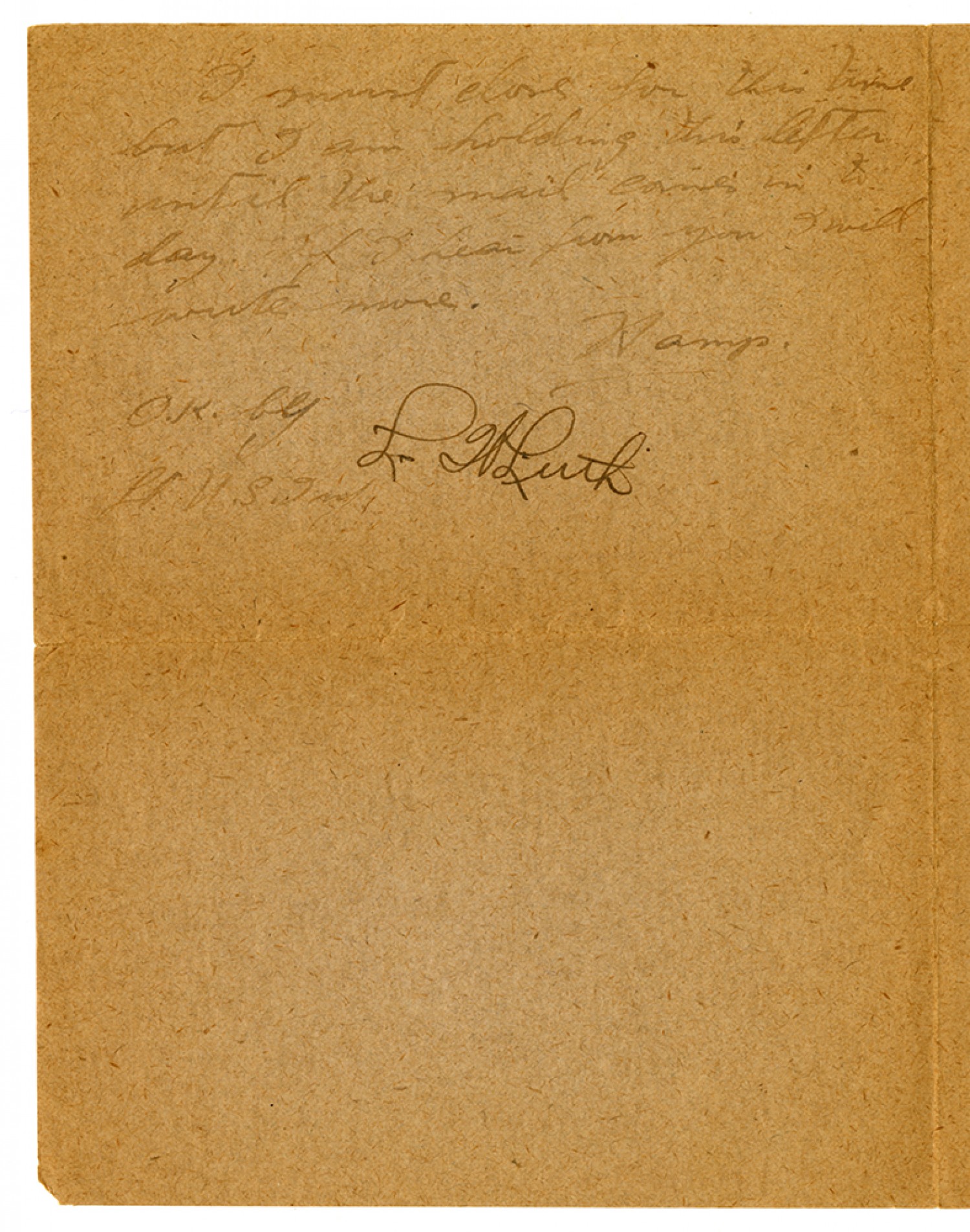 I must close for this time but I am holding this letter until the mail comes to day. If I hear from you I will write more. Hamp. [censor signature]