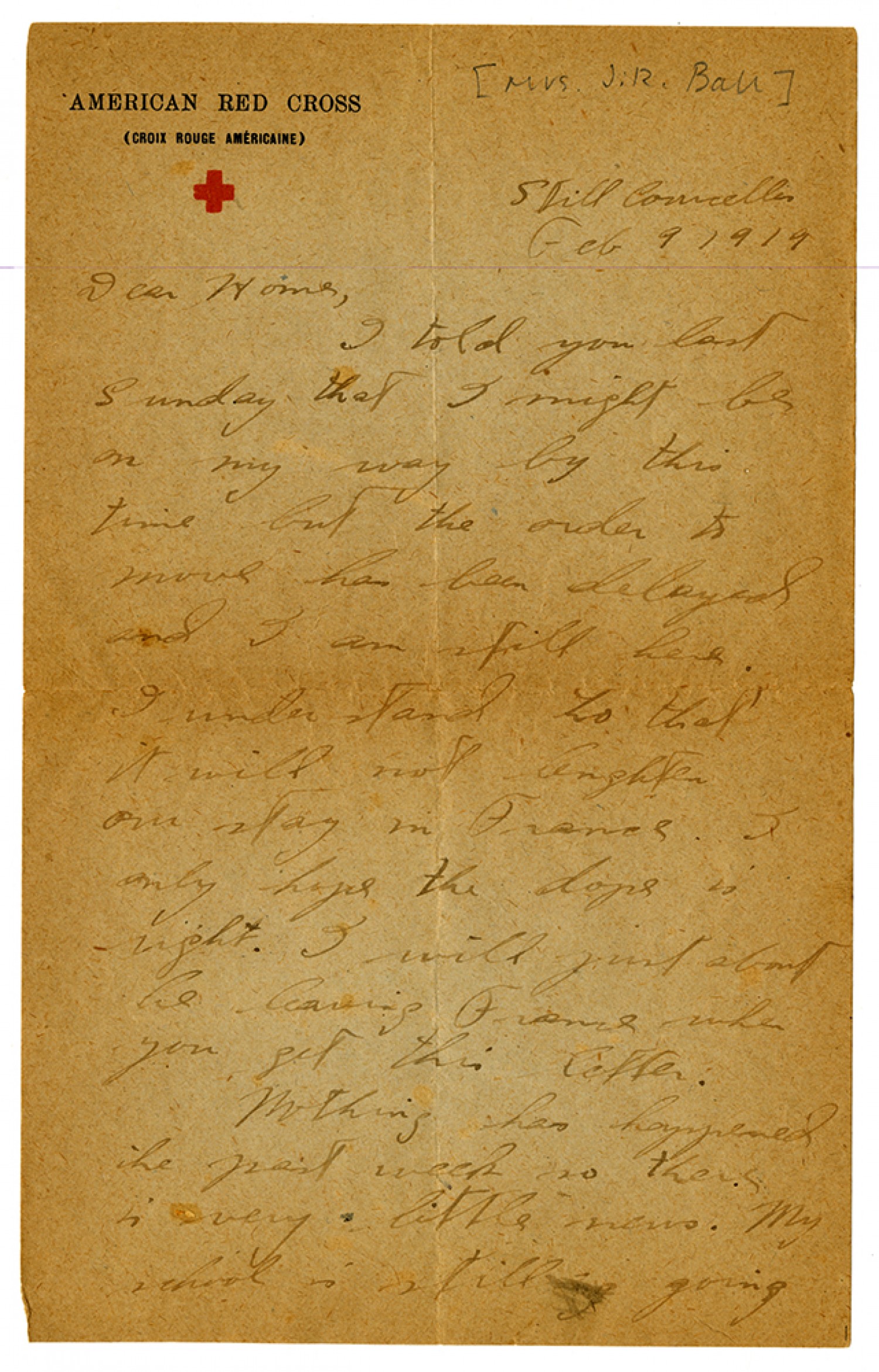 | Title | Hampton B. Ball letter to home - February 9, 1919 |