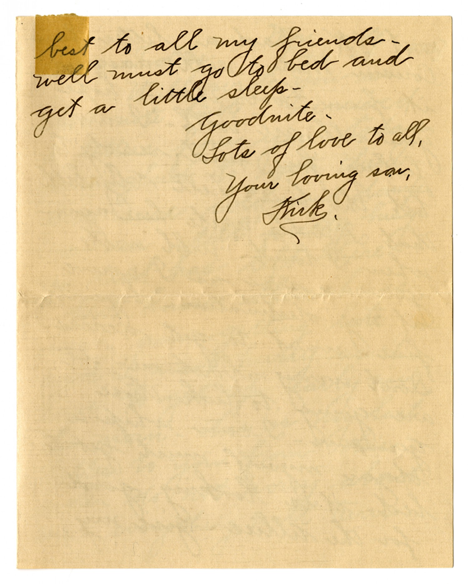 best to all my friends - well must go to bed and get a little sleep - Goodnite - Lots of love to all, Your loving son, Kirk.