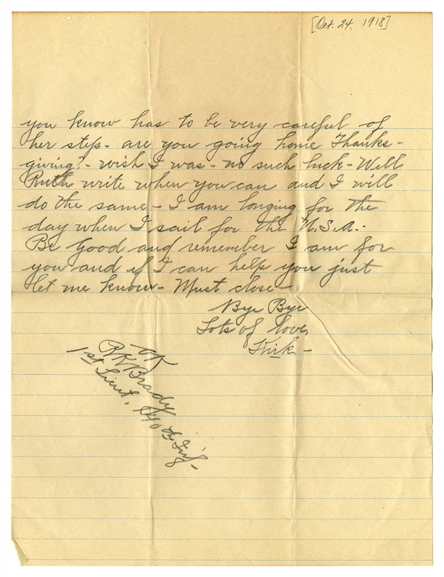 Robert Kirk Brady letter to Sis - October 24, 1918