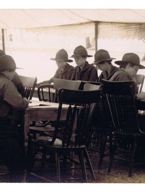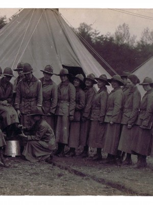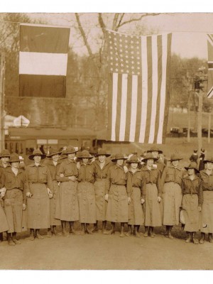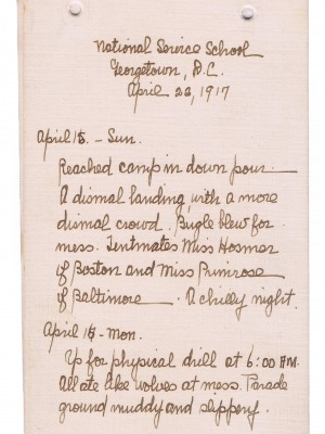 Carrie P. Bribach was an art teacher at the Mary Institute in Carondelet, Mo. She attended the National Service School between 1916 and 1917. Organized by the Women’s Section of the Navy League, the National Service School supported patriotic causes and endorsed military preparedness after the sinking of the RMS Lusitania in 1915. The Women’s Section of the Navy League was the first national women’s preparedness organization and contrasted sharply with pacifist and peace movements that were popular women. The Bribach Collections includes a diary she kept at the National Service School, photographs, and a few newspaper clippings.