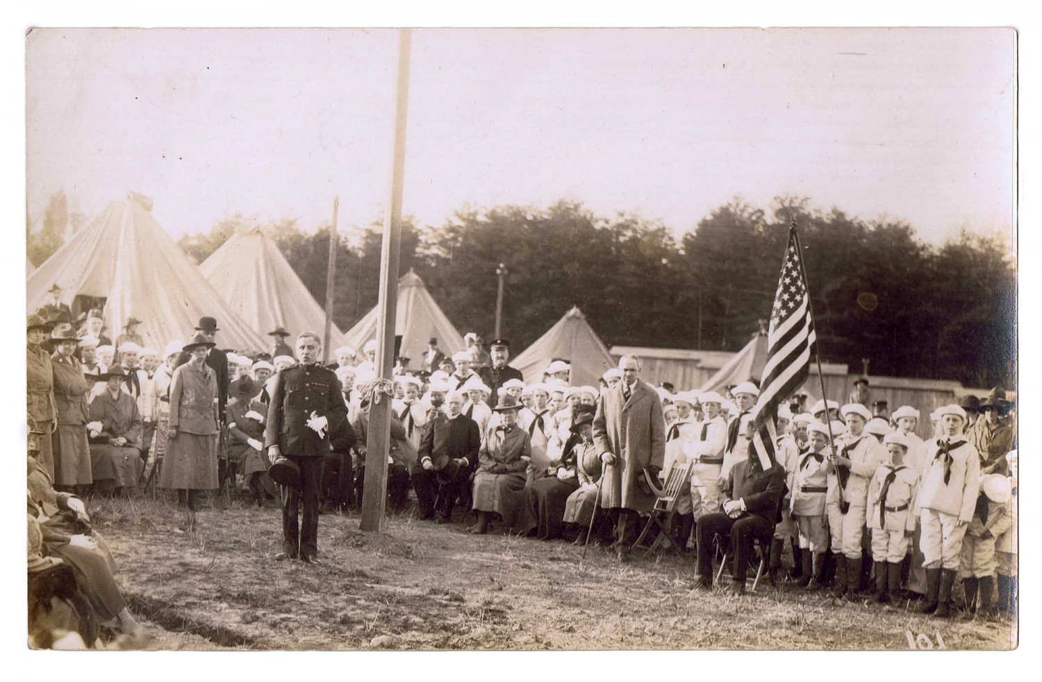 | Description | This is a photograph of the Junior Defense League with Major General Barnett, U.S.M.C. at the National Service school. In the summer of 1916 and spring of 1917 Carrie P. Bribach attended the National Service School, which was formed in 1915 by the Women |