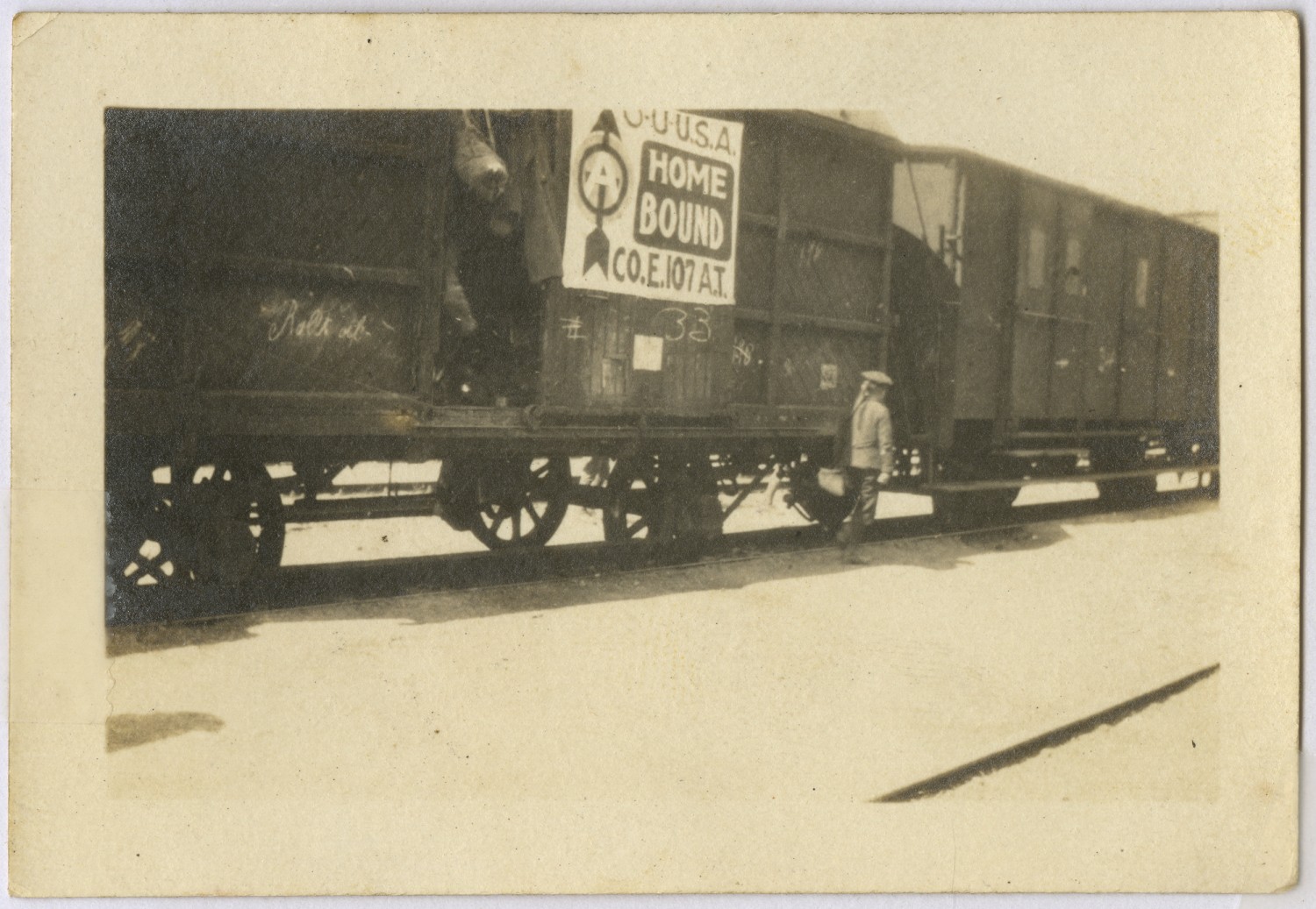A troop train marked "Home Bound"