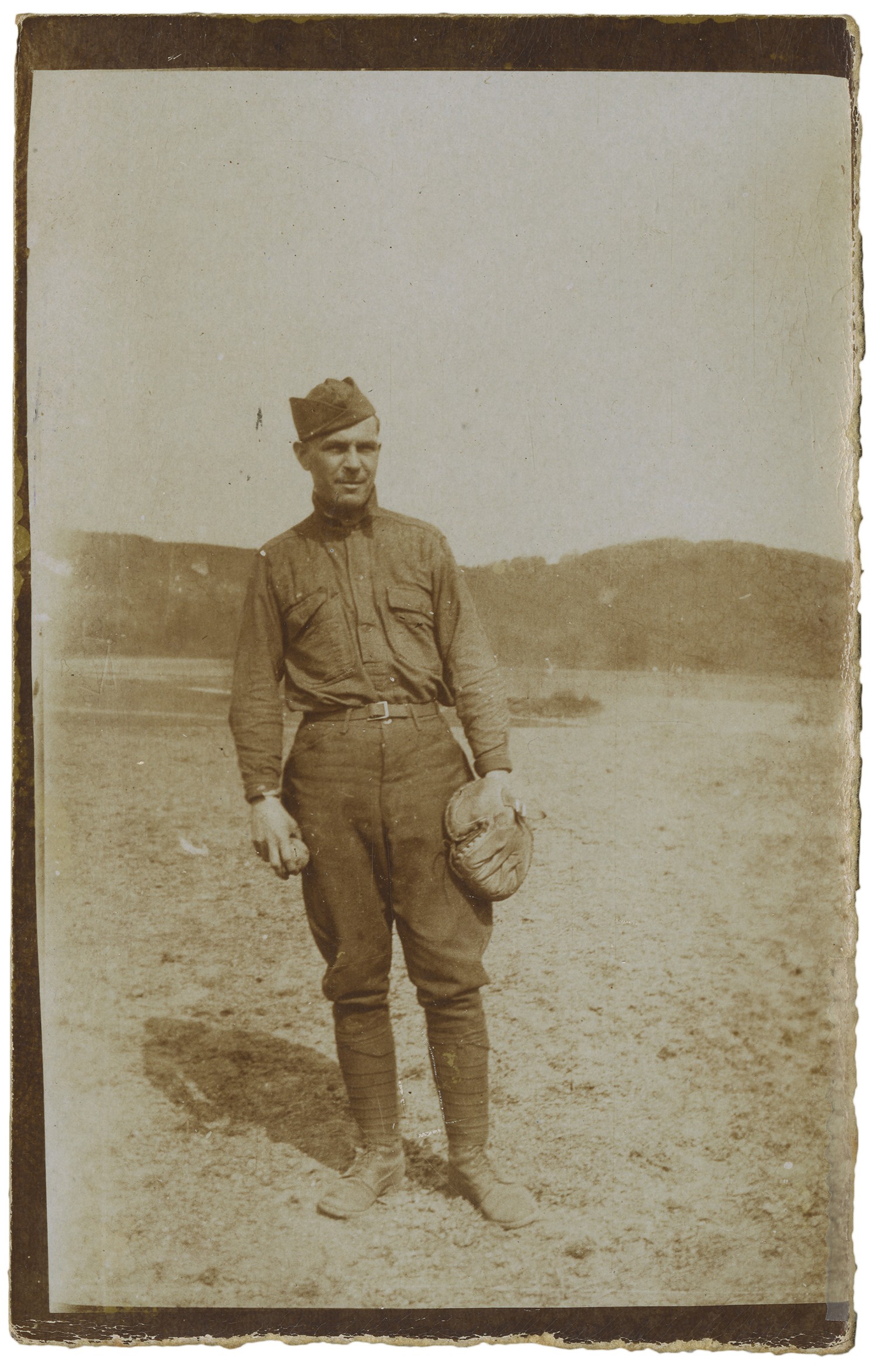 An unidentified soldier with baseball glove