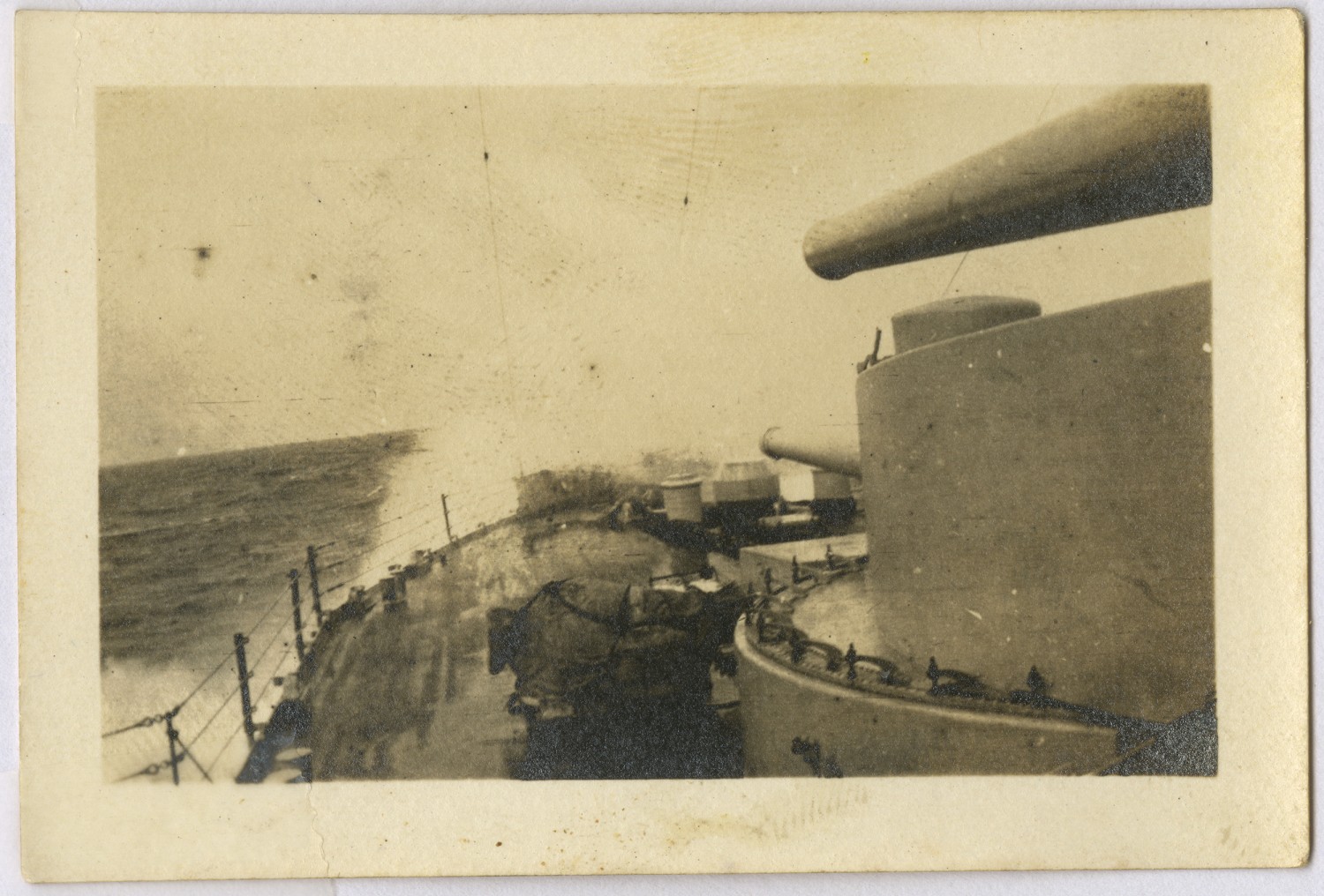 Ocean Spray across the bow of the USS Louisiana