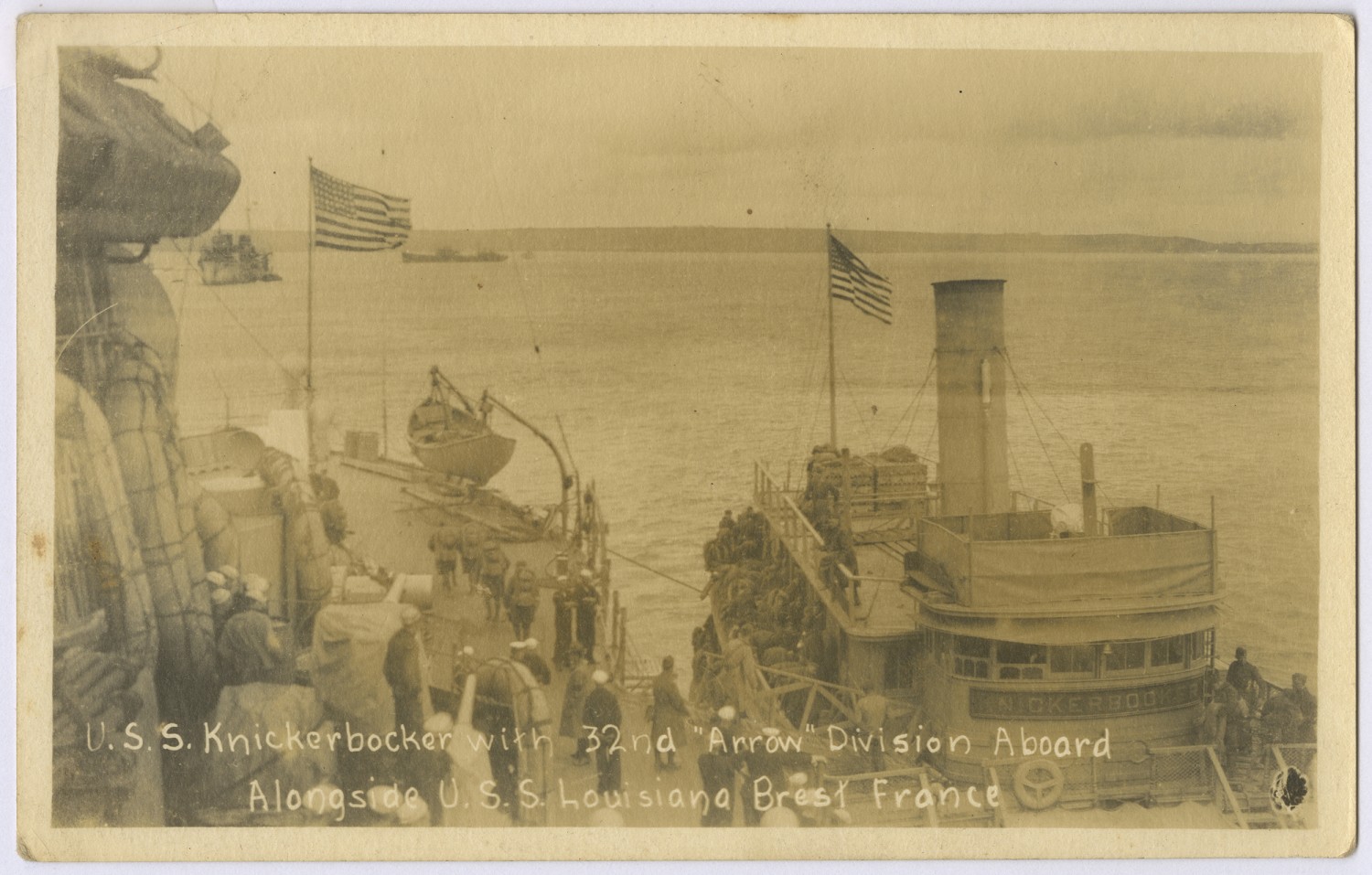 The USS Knickerbocker and the USS Louisiana at Brest, France