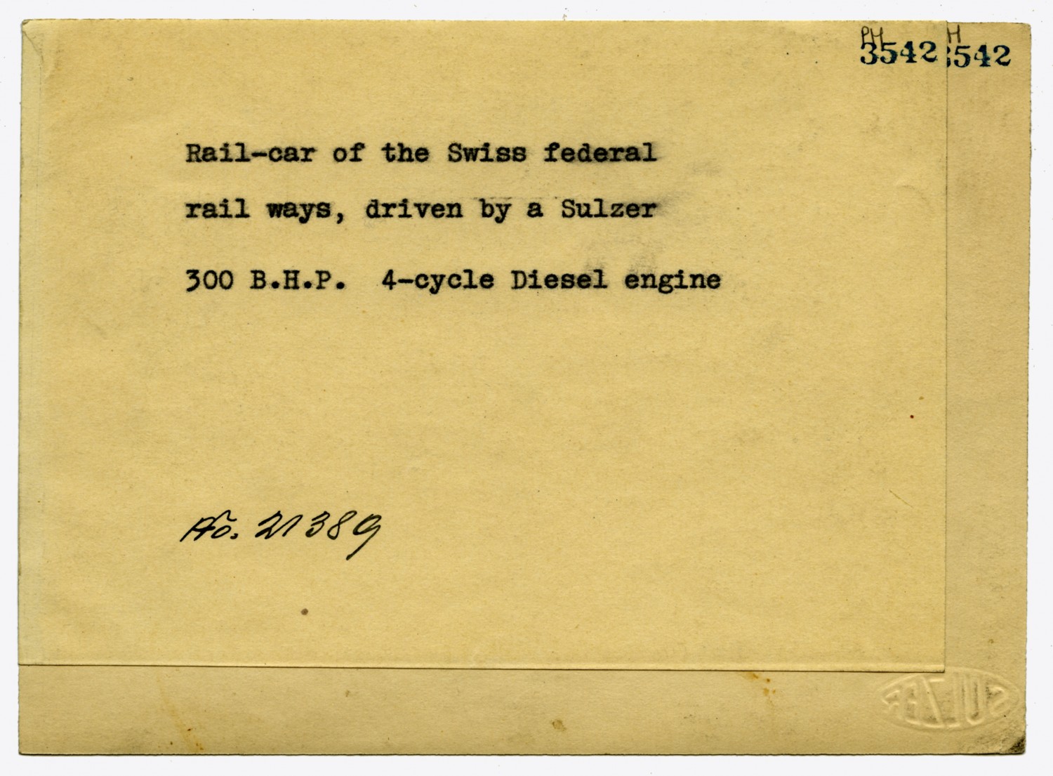 | Description | Photograph of a train of the Swiss federal rail way that used the Sulzer 300 BHP 4 cycle Diesel engine. |
