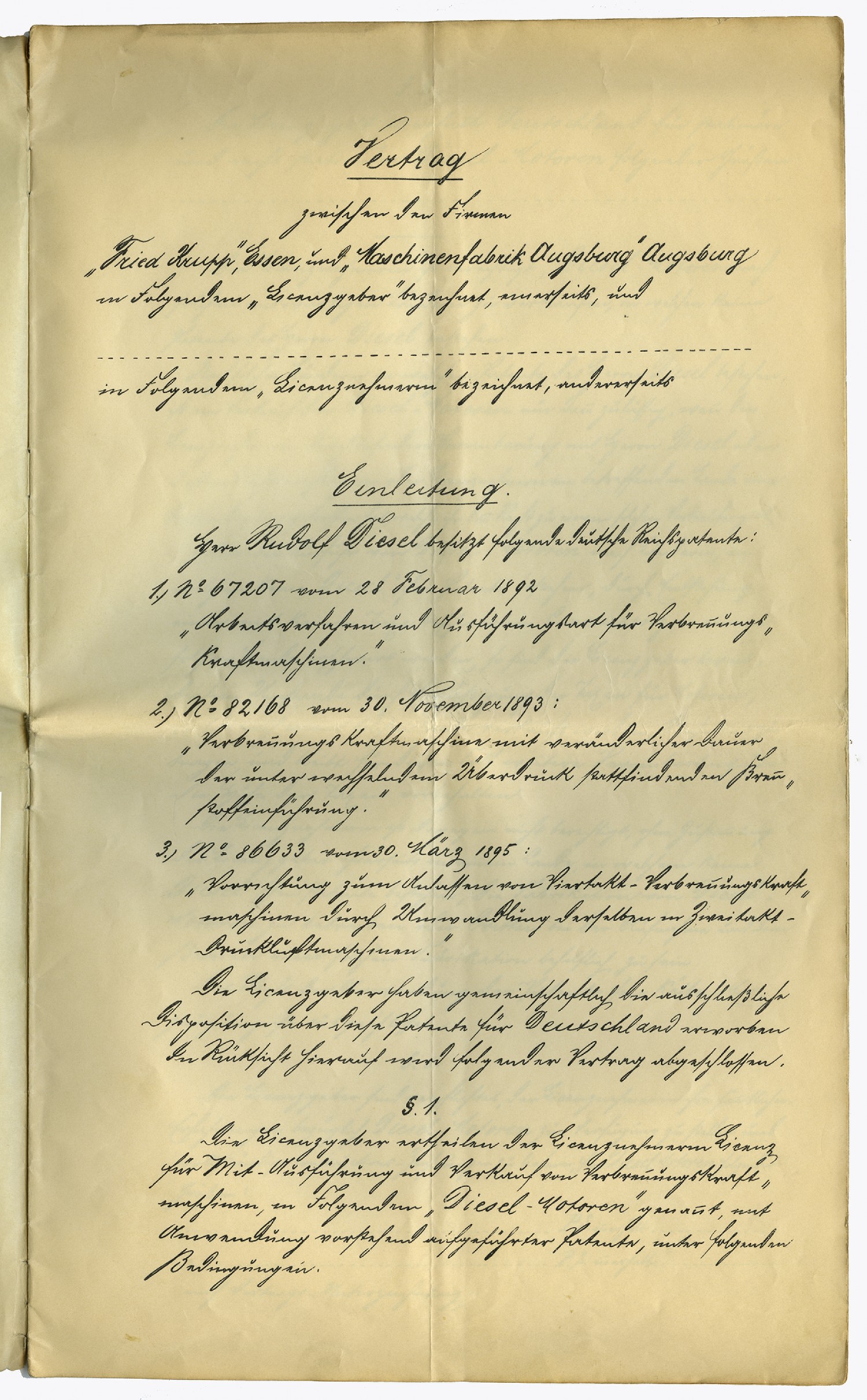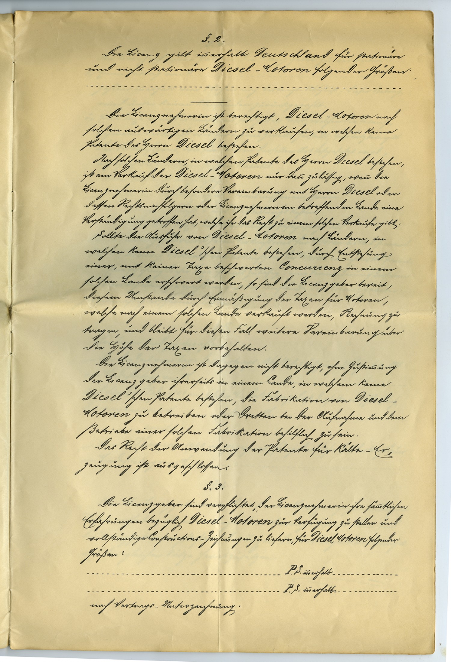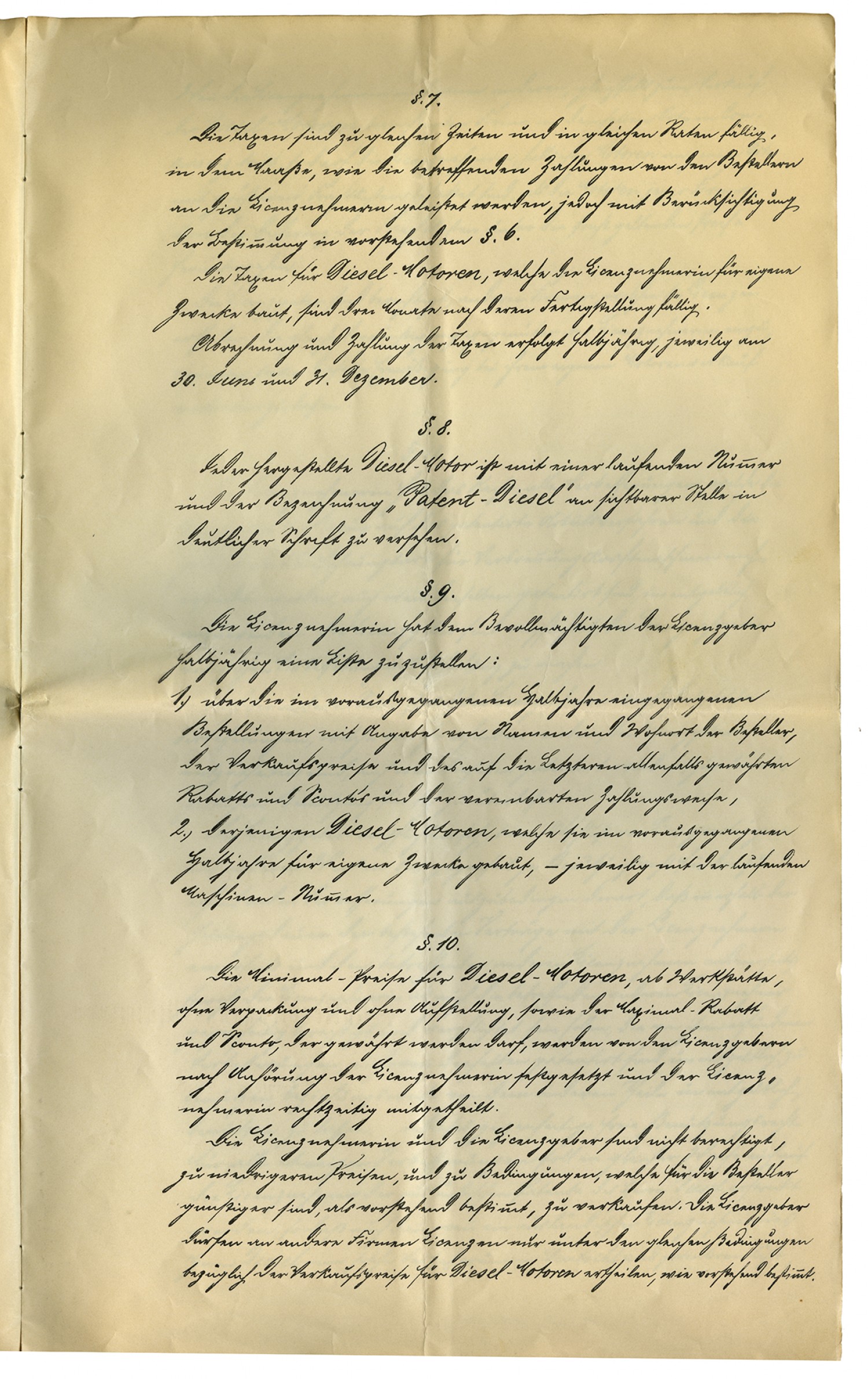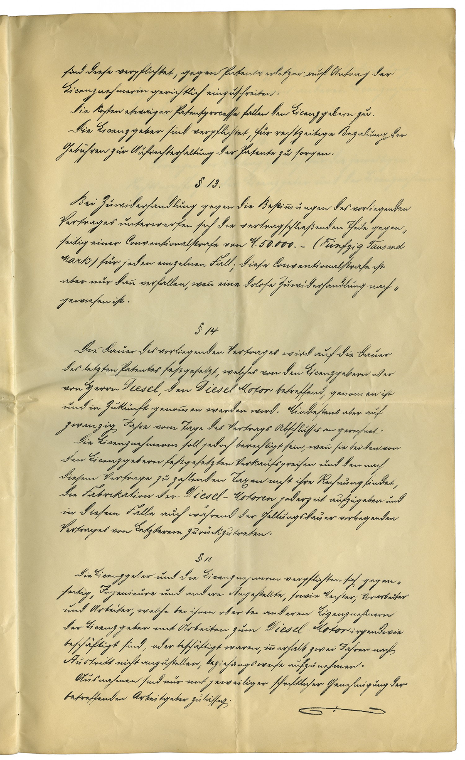 | Description | This document is a contract with the Diesel Motor Company founded by Rudolf Diesel, inventor of the diesel engine. It is written in German and contains sixteen different sections. |