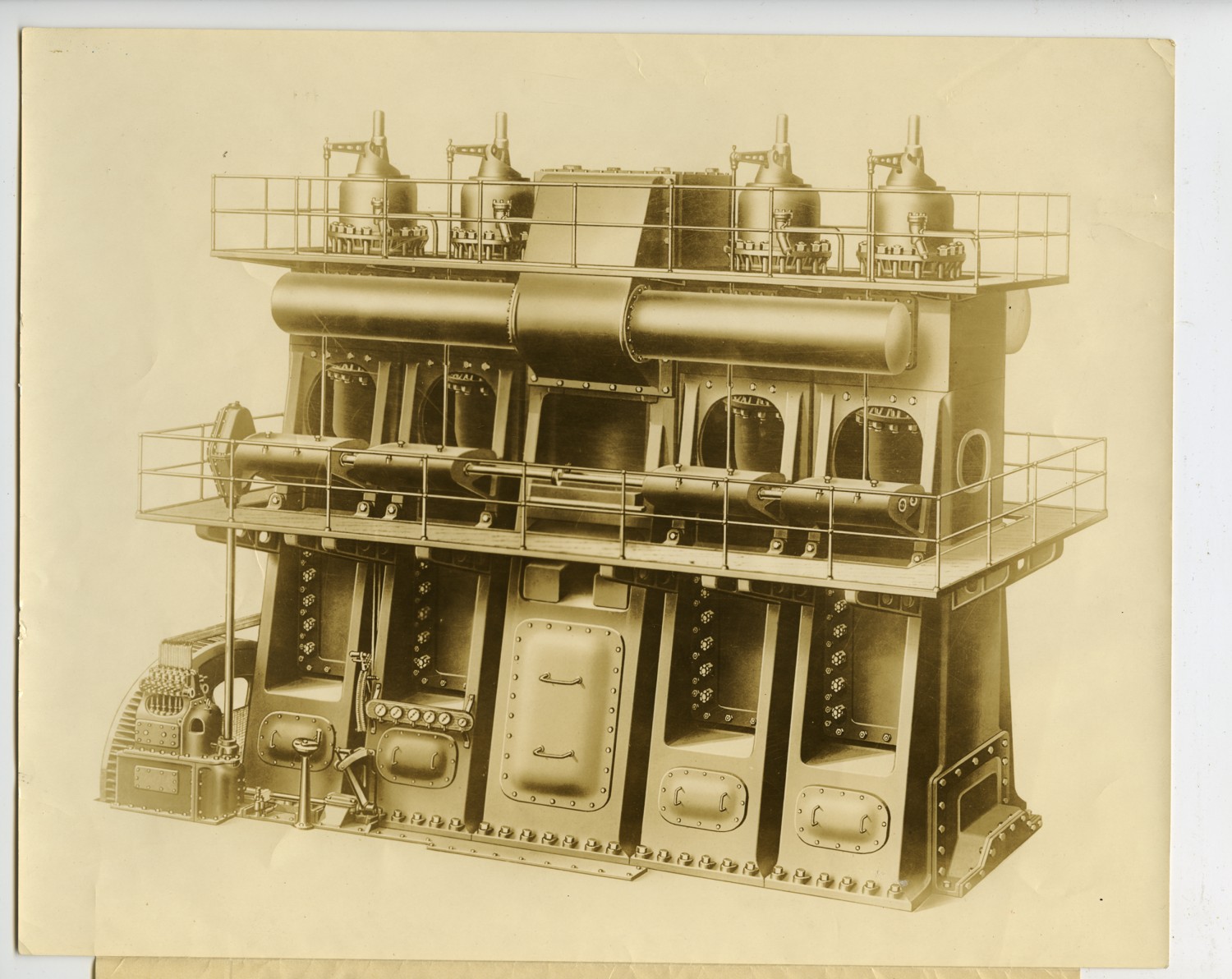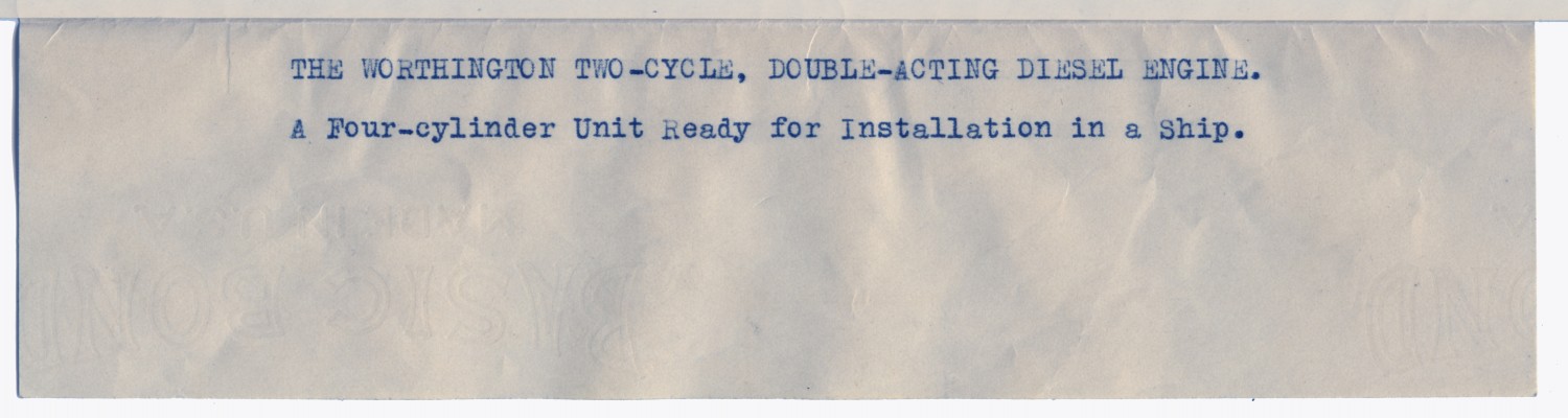 | Description | Drawing of a Worthington Two-Cycle, Double- Acting Diesel Engine. The Worthington engine was designed and built in America. It was designed to be more economical both in cost per horsepower and fuel consumption. |