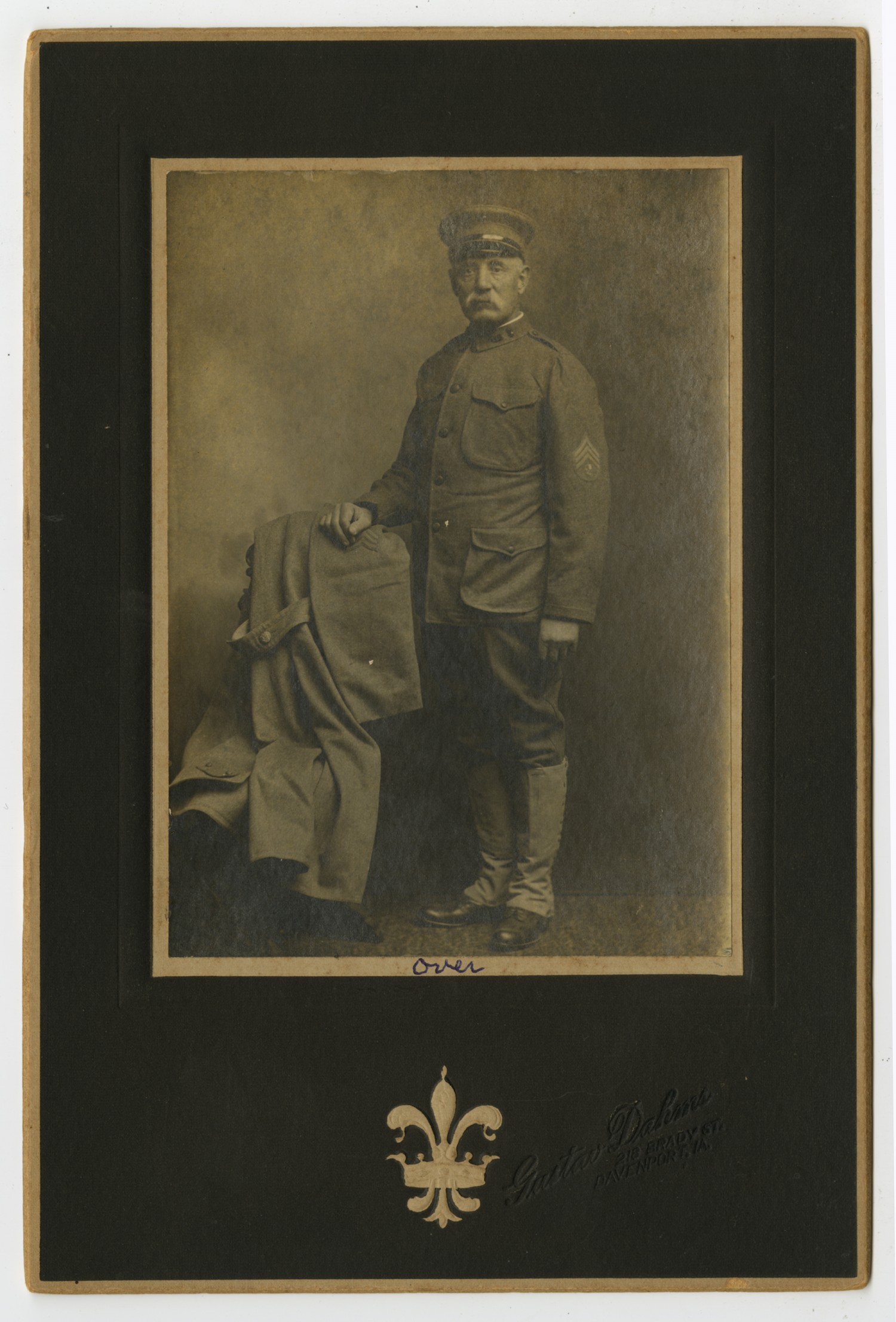 | Description | Photograph of Joe Mack in uniform standing with his right arm resting on a chair. His coat is draped over the chair. |