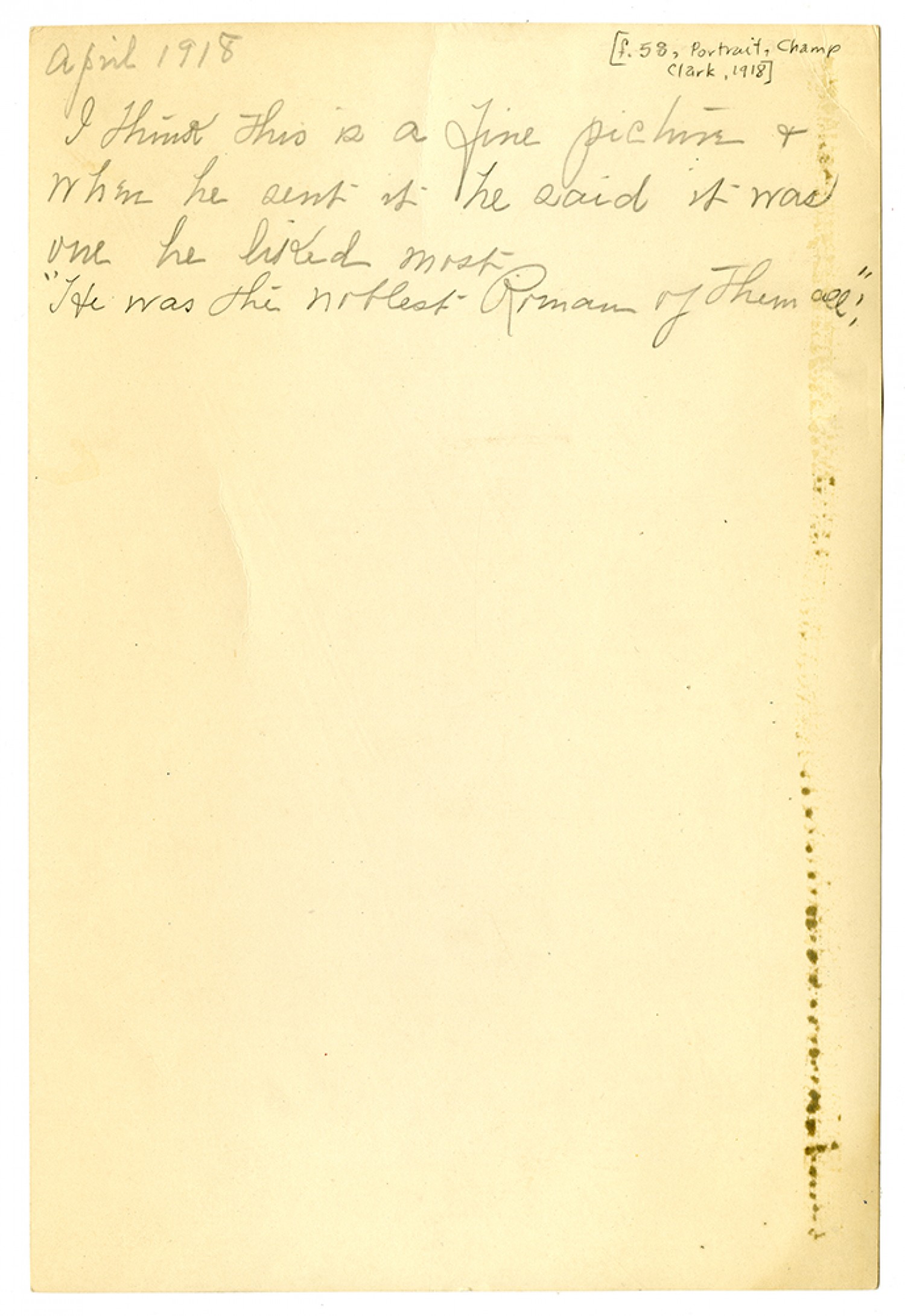 April 1918 I think this is a fine picture & when he sent it he said it was one he liked most “He was the noblest Roman of them all”:
