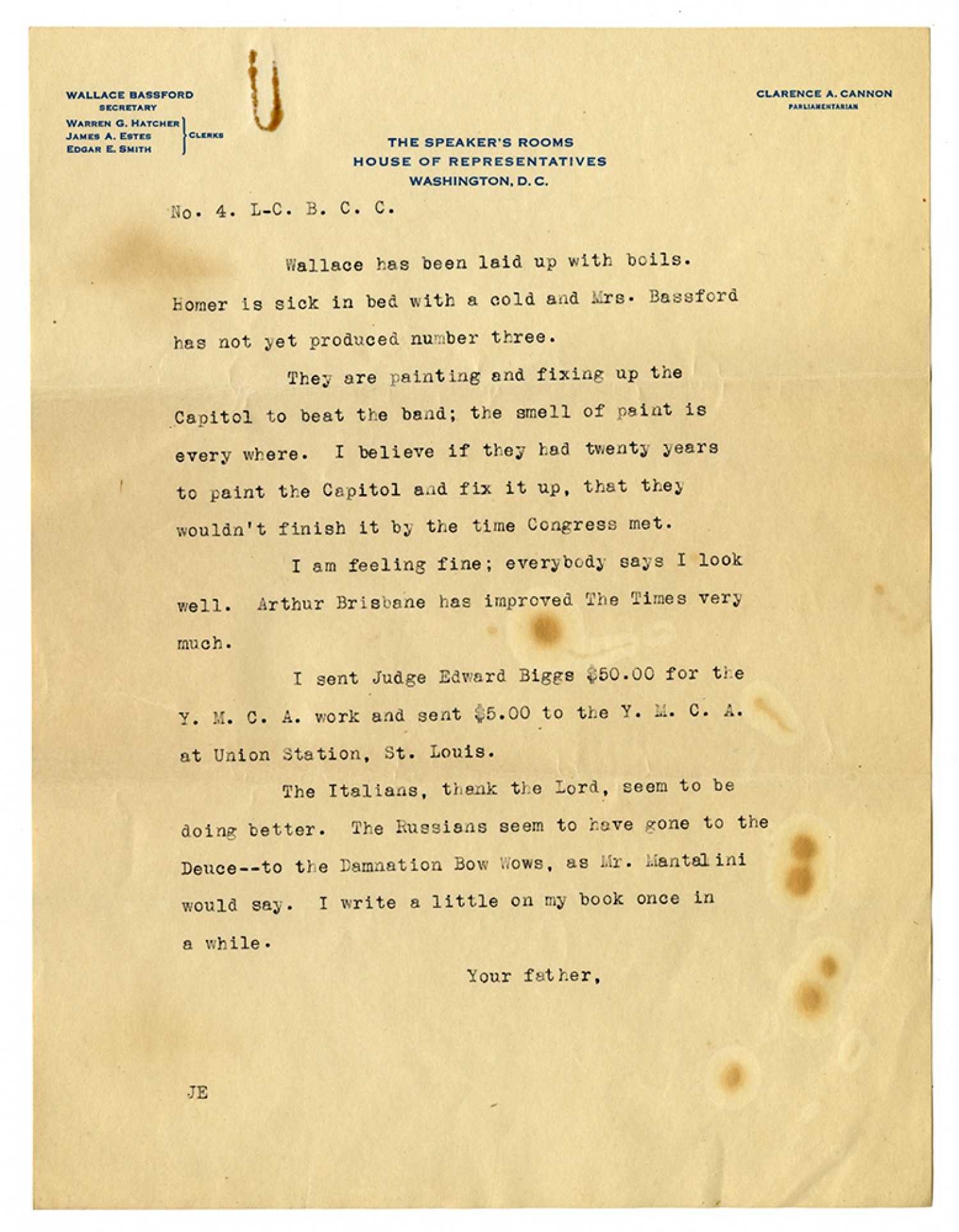 | Source | Allen, Charles E. Letter to Champ Clark. 26 April 1917. Clark, Champ (1850-1921) and Bennett Champ (1890-1954), Papers, 1853-1973. C0666. The State Historical Society of Missouri, Columbia, MO. |