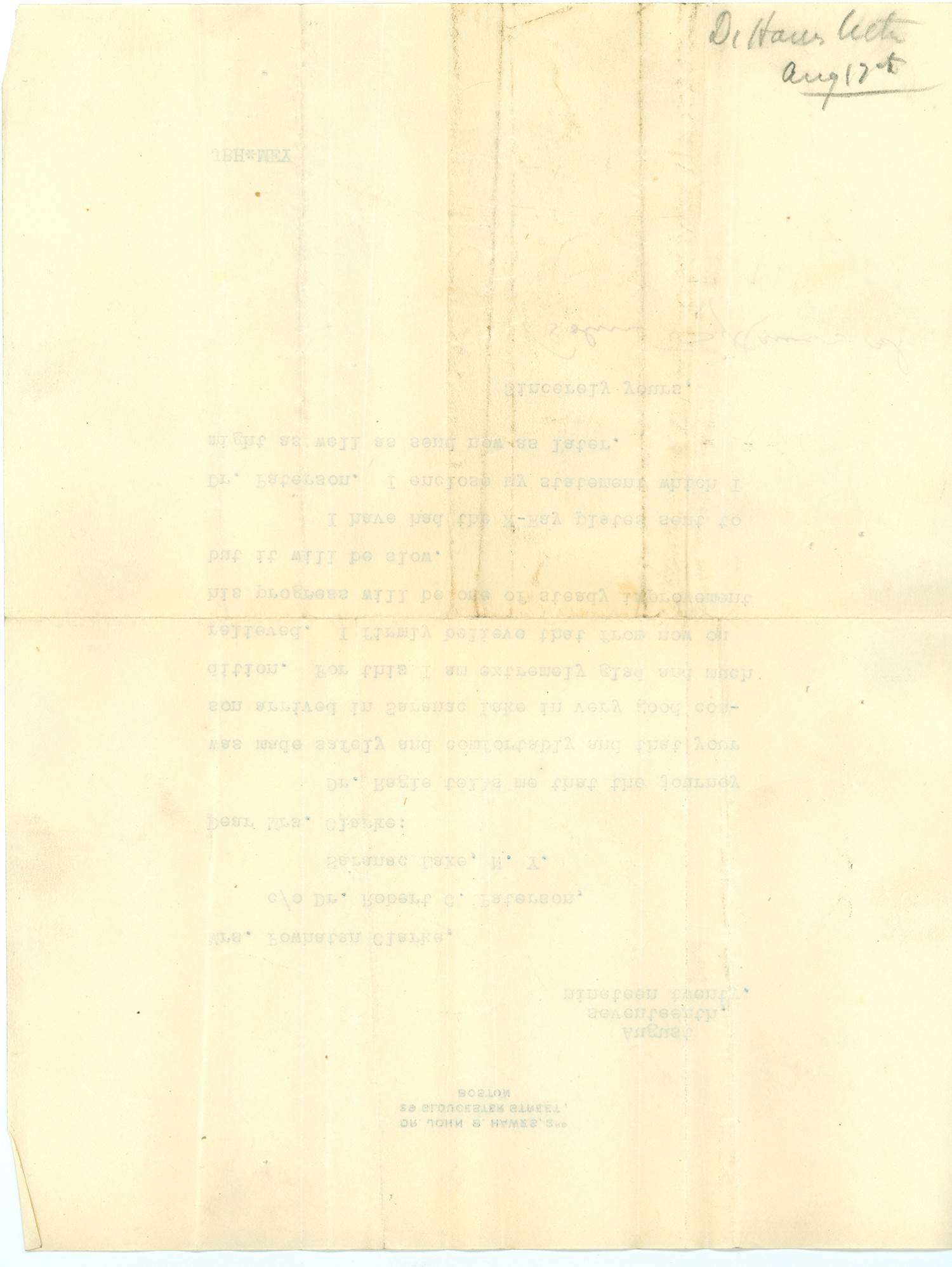 | Title | Dr. John F. Hawes letter to Elizabeth C. Clarke - August 17, 1920 |