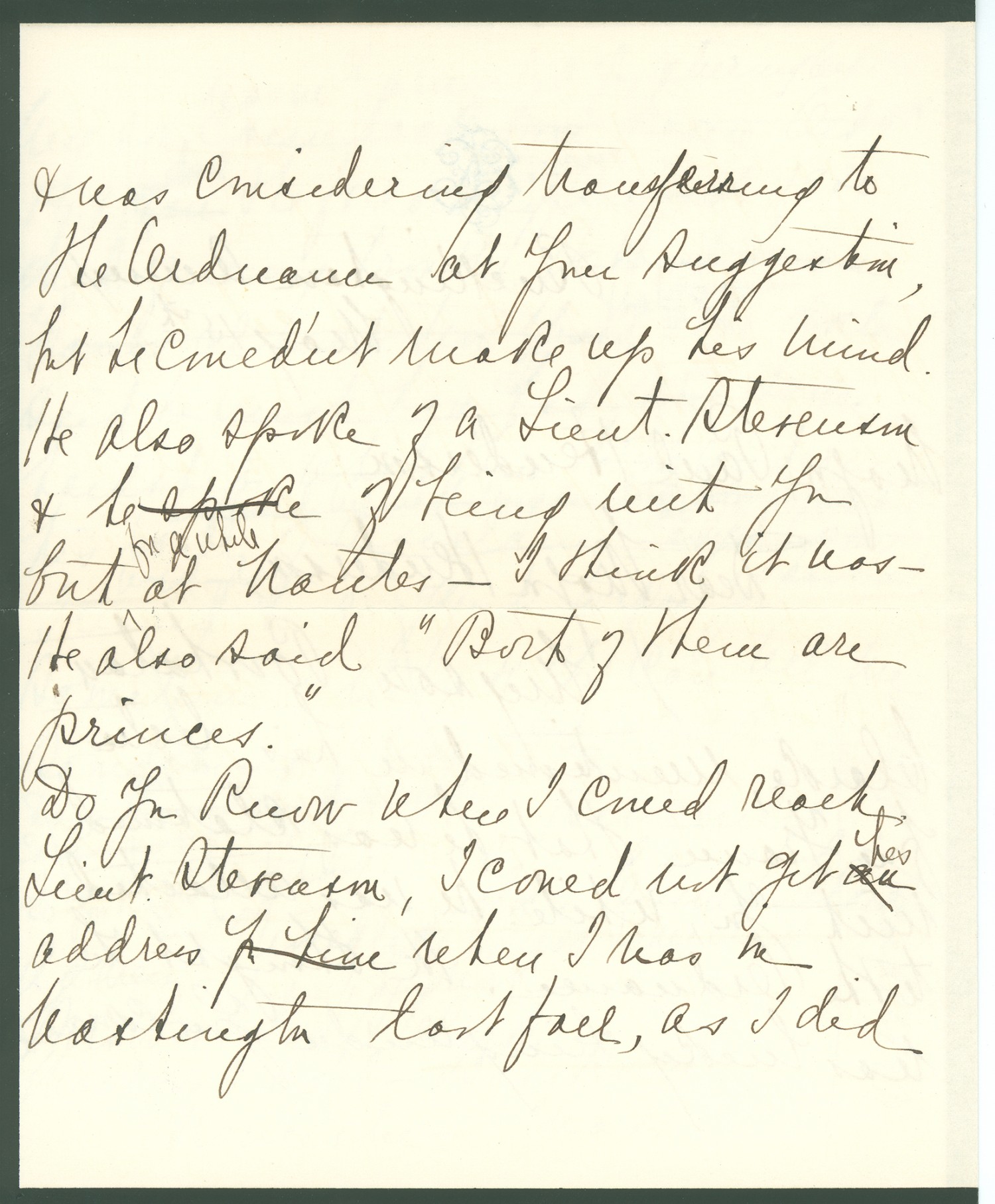 and was considering transferring to the Ordnance at your suggestion, but he couldn