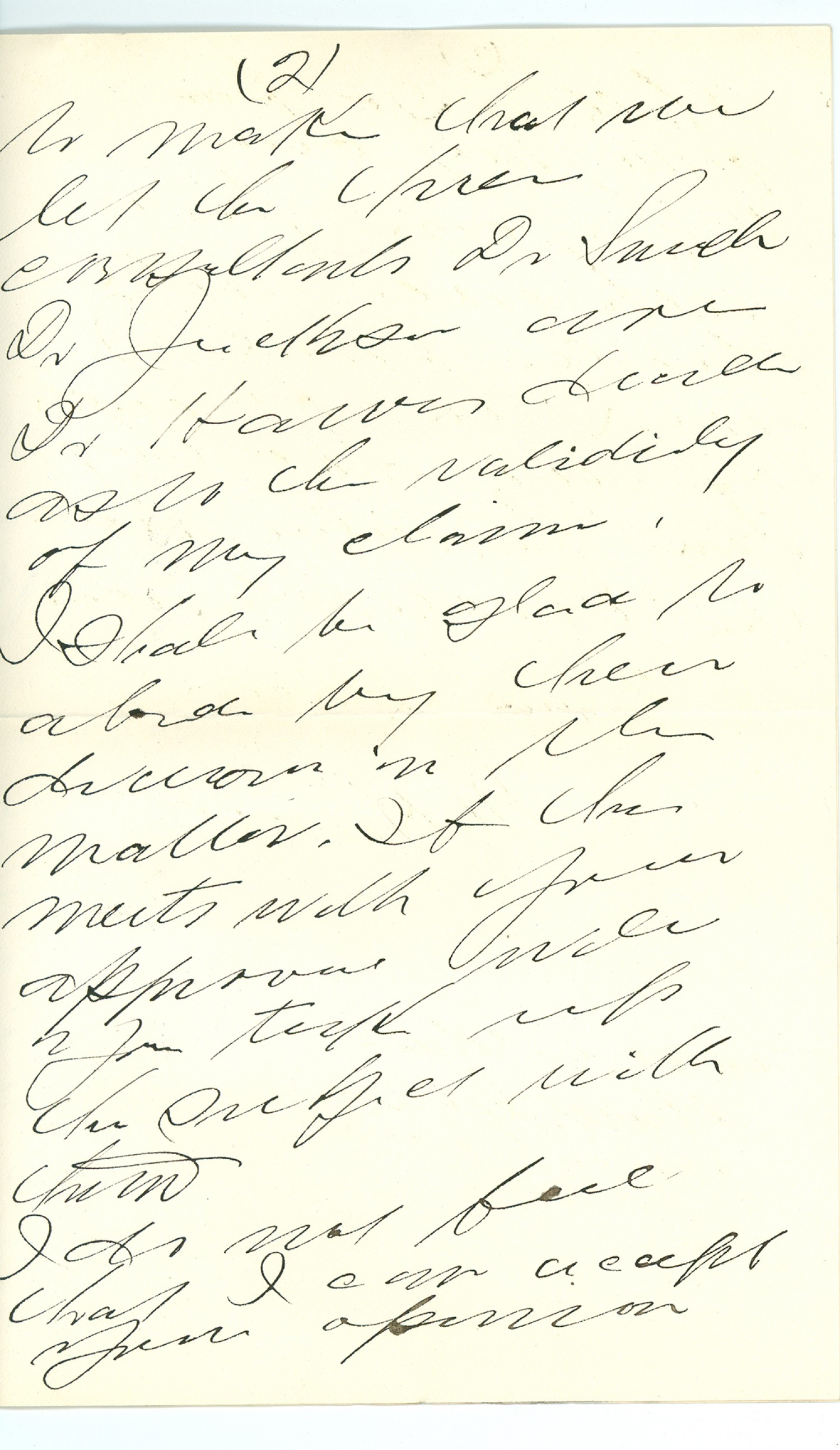 [page 2] to make that [ms illegible: 1 wd] let the [ms illegible: 1 wd] consultants Dr Smith Dr. [ms illegible: 1 wd] and Dr. Hawes decide as to the validity of my claim. I shall be glad to abide by their decision in the matter. If this meets with your approval would you take up the subject with him. I do not feel that I can accept your opinion