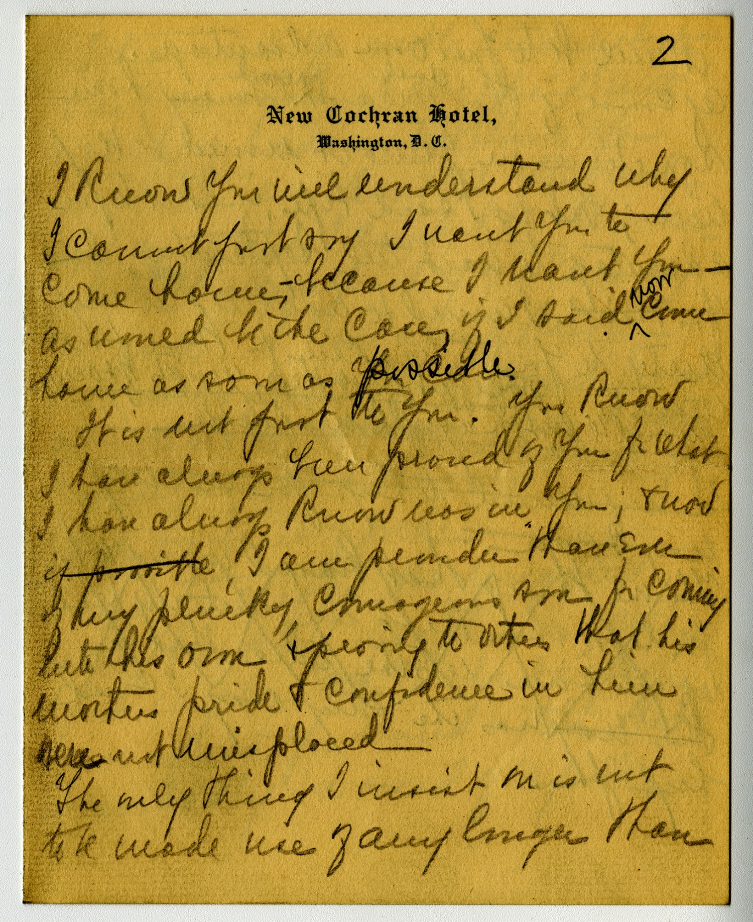 [page 2] [New Cochran Hotel letterhead] I know you will understand why I couldn