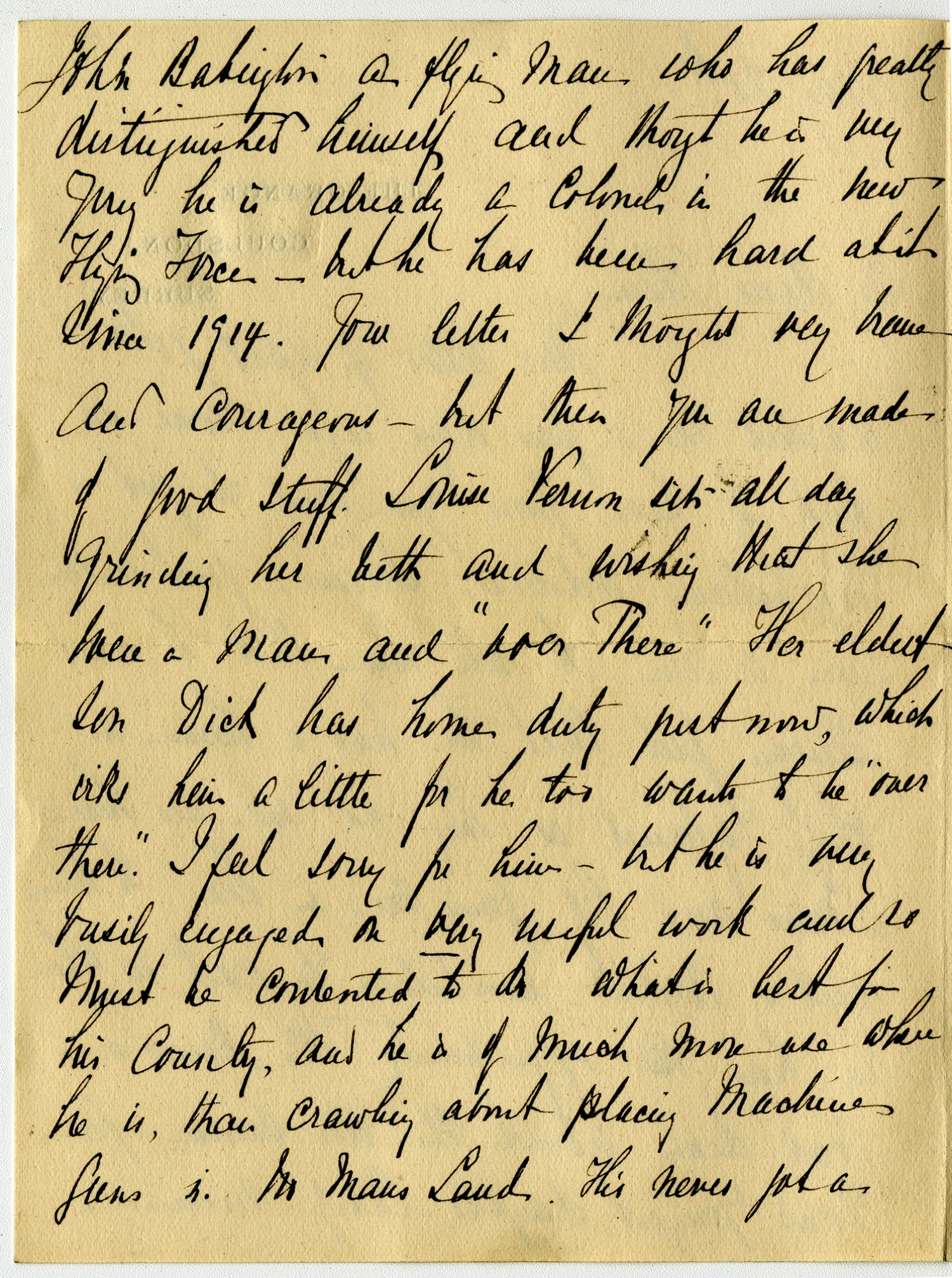 John Babiylin a flying man who has really distinguished himself and though he is [ms illegible: 1 wd] My he is already a Colonel in the new Flying Force