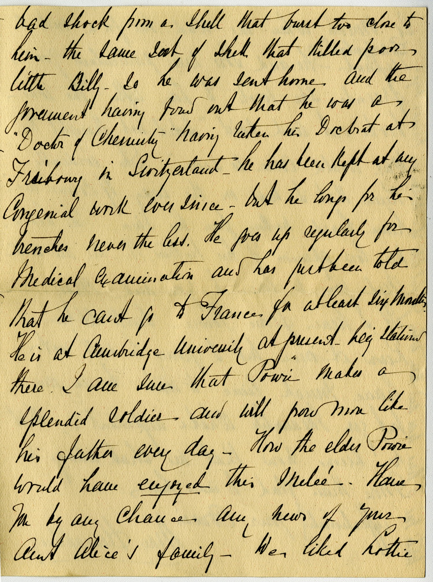 bad shock from a shell that burst too close to him