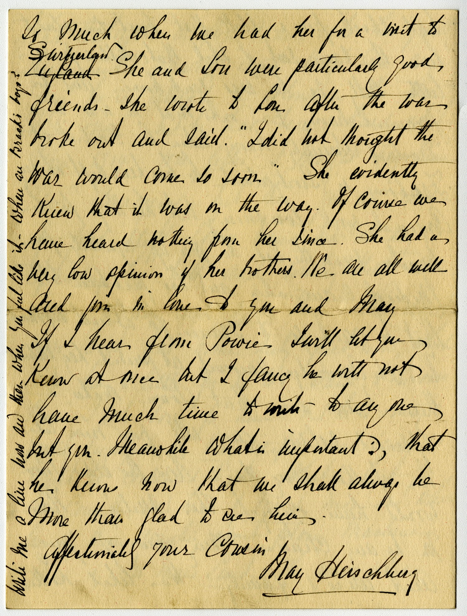 | Source | Heischburg, Mary. Letter to Elsie. 20 May 1918. Clarke, Powhatan Papers. A0293. Missouri History Museum, Saint Louis, Missouri. |