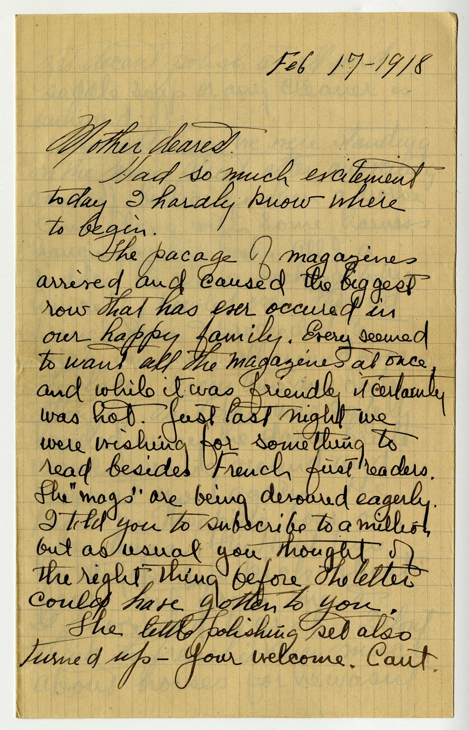 | Source | Clarke, Powhatan. Letter to Mother. 17 February 1918. Clarke, Powhatan Papers. A0293. Missouri History Museum, Saint Louis, Missouri. |