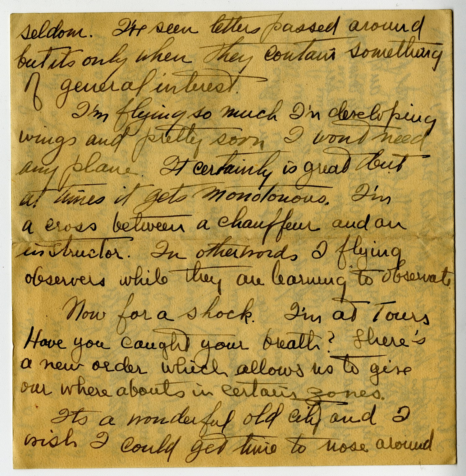 | Description | Powhatan Clarke sent this letter to Jane and stated that he was in Tours, France and apologized for not writing more often. Clarke served with the 21st Aero Squadron and Labor Bureau A.E.F. during Word War I. |