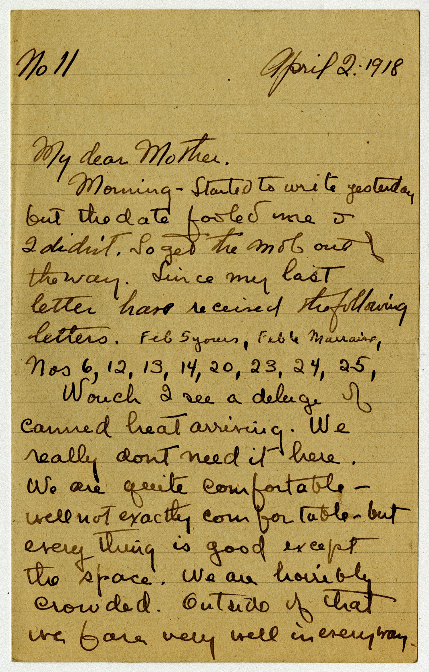 No 11 April 2: 1918 My dear Mother. Morning