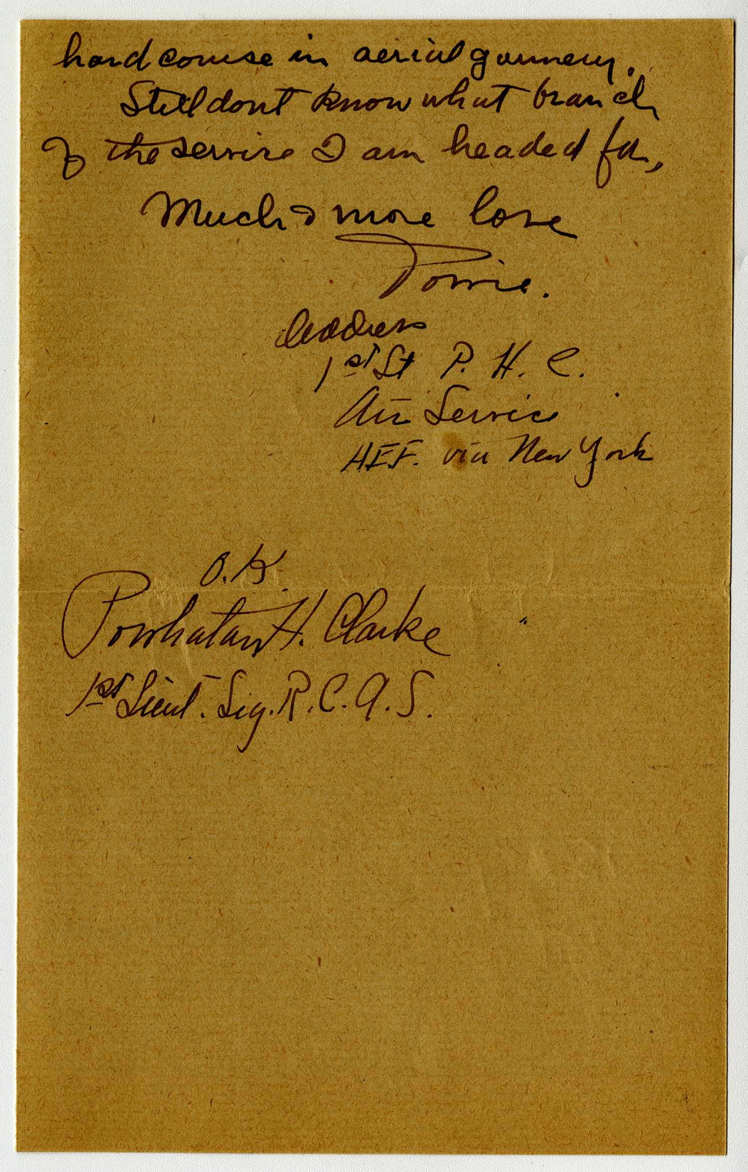 | Source | Clarke, Powhatan H. Letter to Mother. 02 April 1918. Clarke, Powhatan Papers. A0293. Missouri History Museum, Saint Louis, Missouri. |