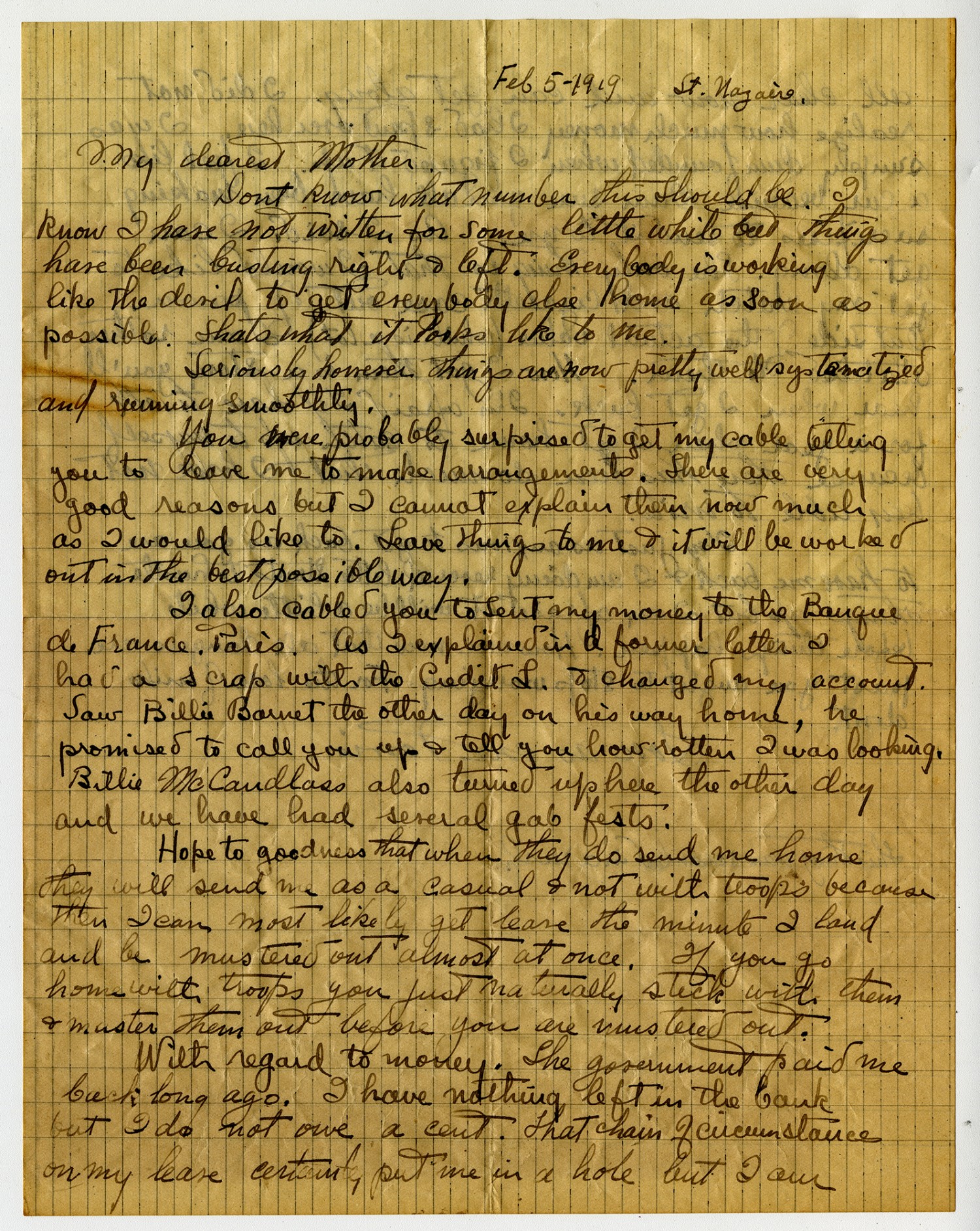 | Source | Clarke, Powhatan H. Letter to Mother. 05 February 1919. Clarke, Powhatan Papers. A0293. Missouri History Museum, Saint Louis, Missouri. |