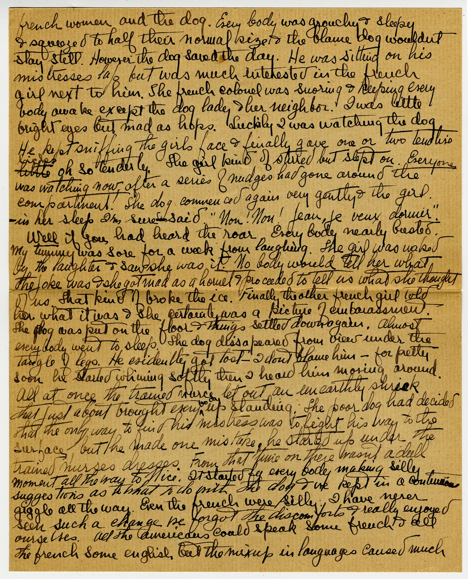 French women and the dog. Every body was grouchy & sleepy & squeezed to half their normal size & the blame dog wouldn