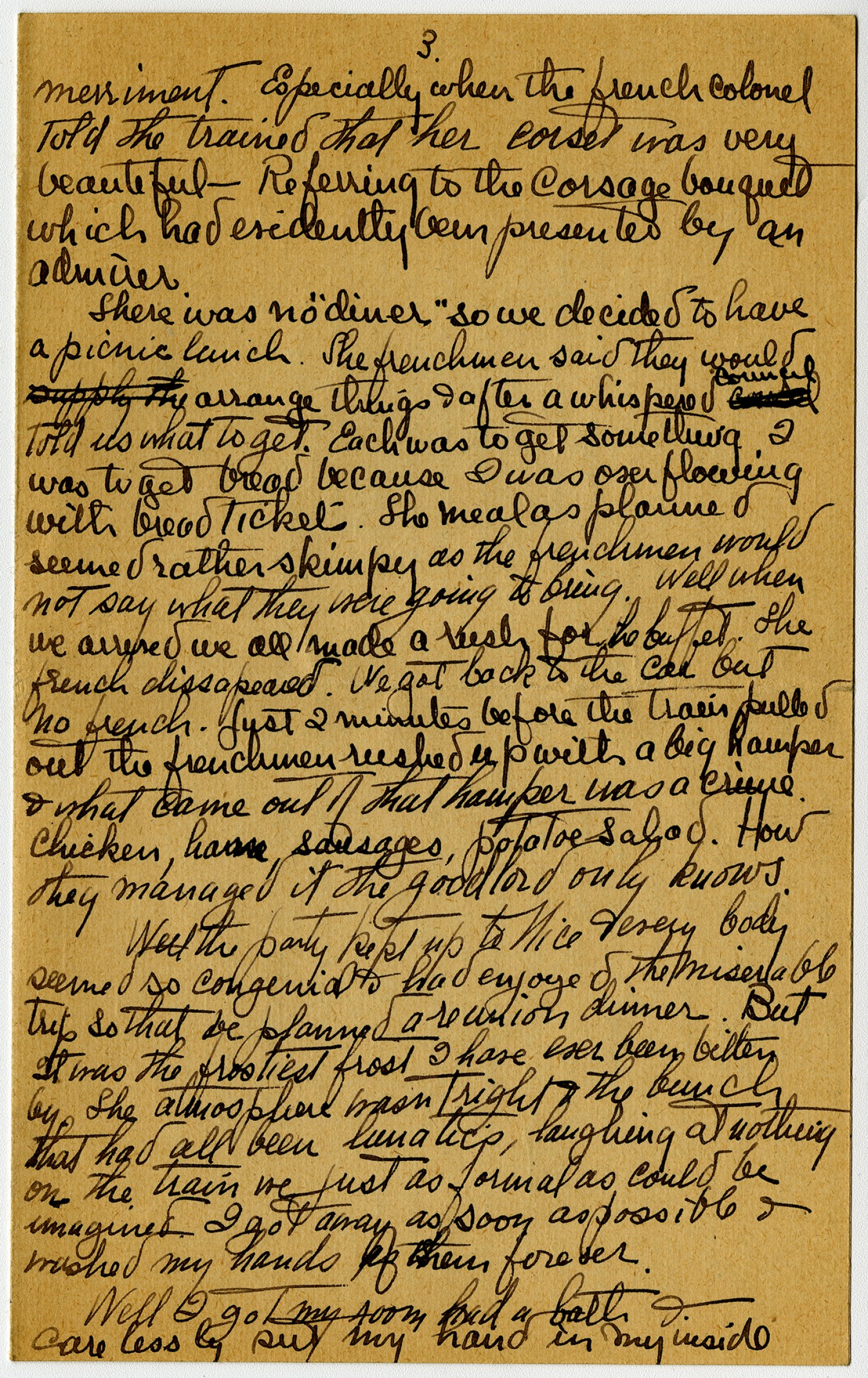 [page 3] merriment. Especially when the French colonel told the trained that her corset was very beautiful