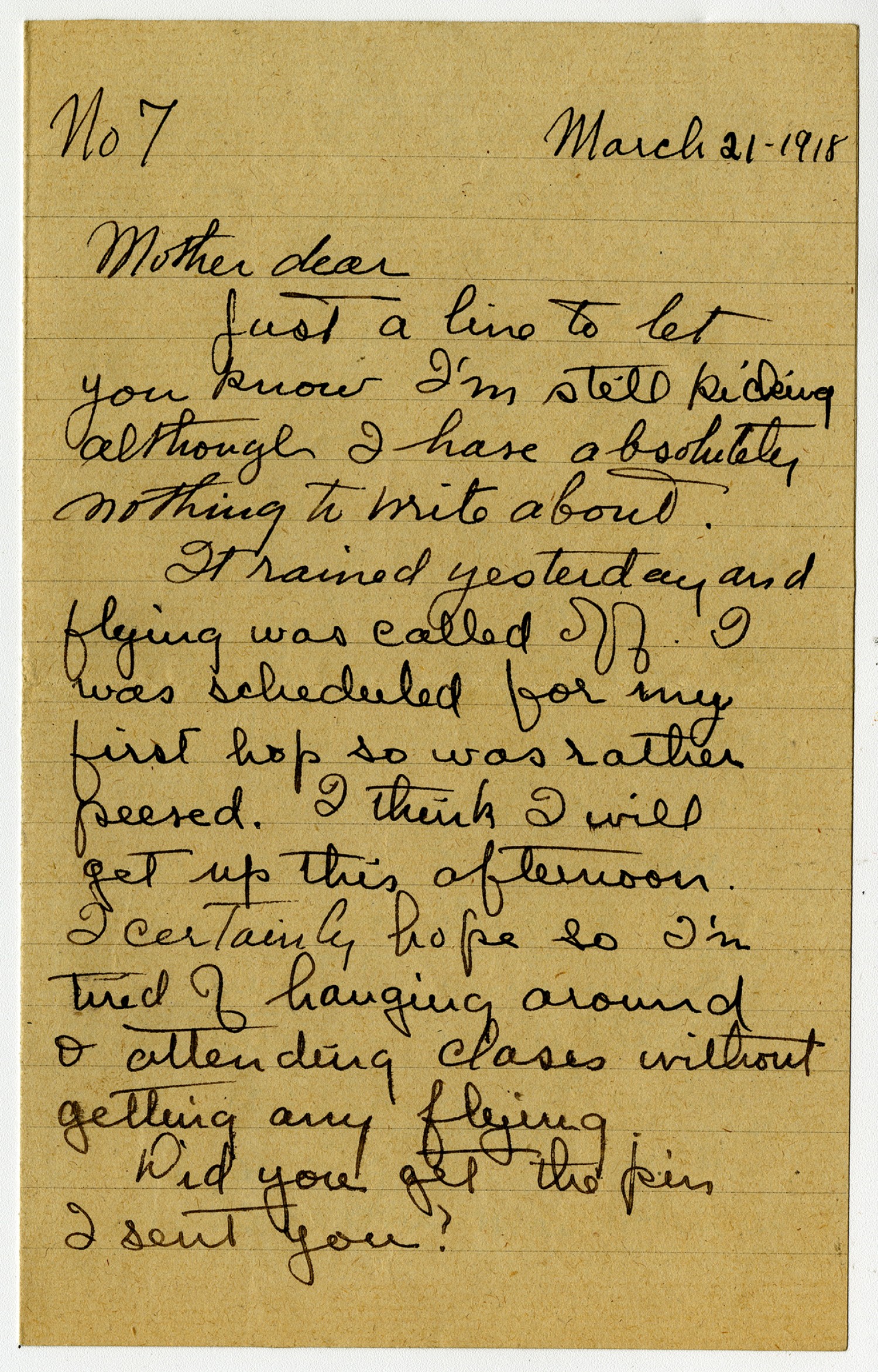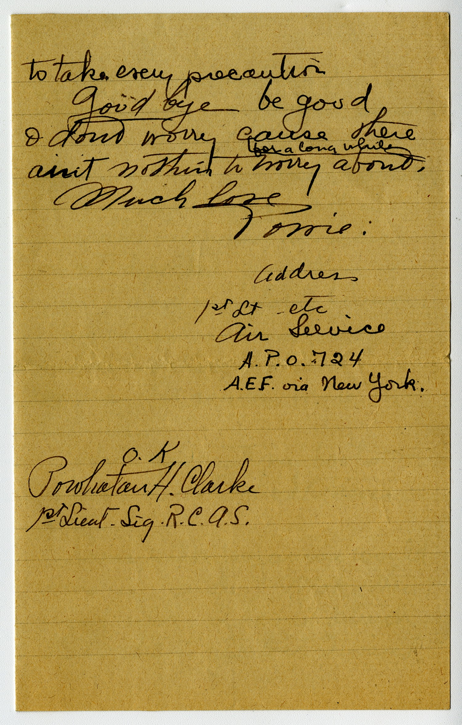 | Source | Clarke, Powhatan H. Letter to Mother. 21 March 1918. Clarke, Powhatan Papers. A0293. Missouri History Museum, Saint Louis, Missouri. |