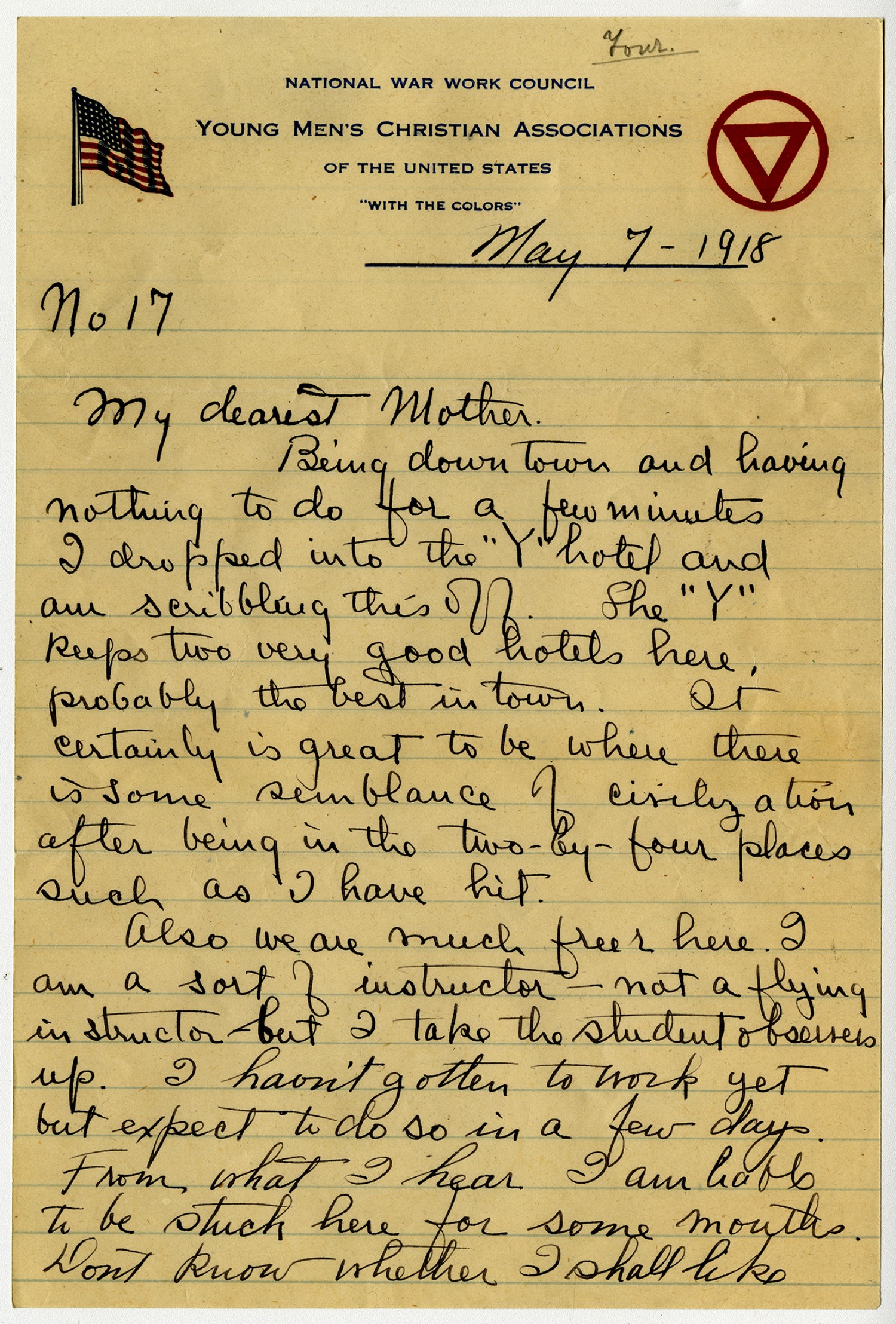 | Description | Powhatan Clarke wrote to his mother about his new position as a pilot for student observers. Clarke served with the 21st Aero Squadron and Labor Bureau A.E.F. during Word War I. |