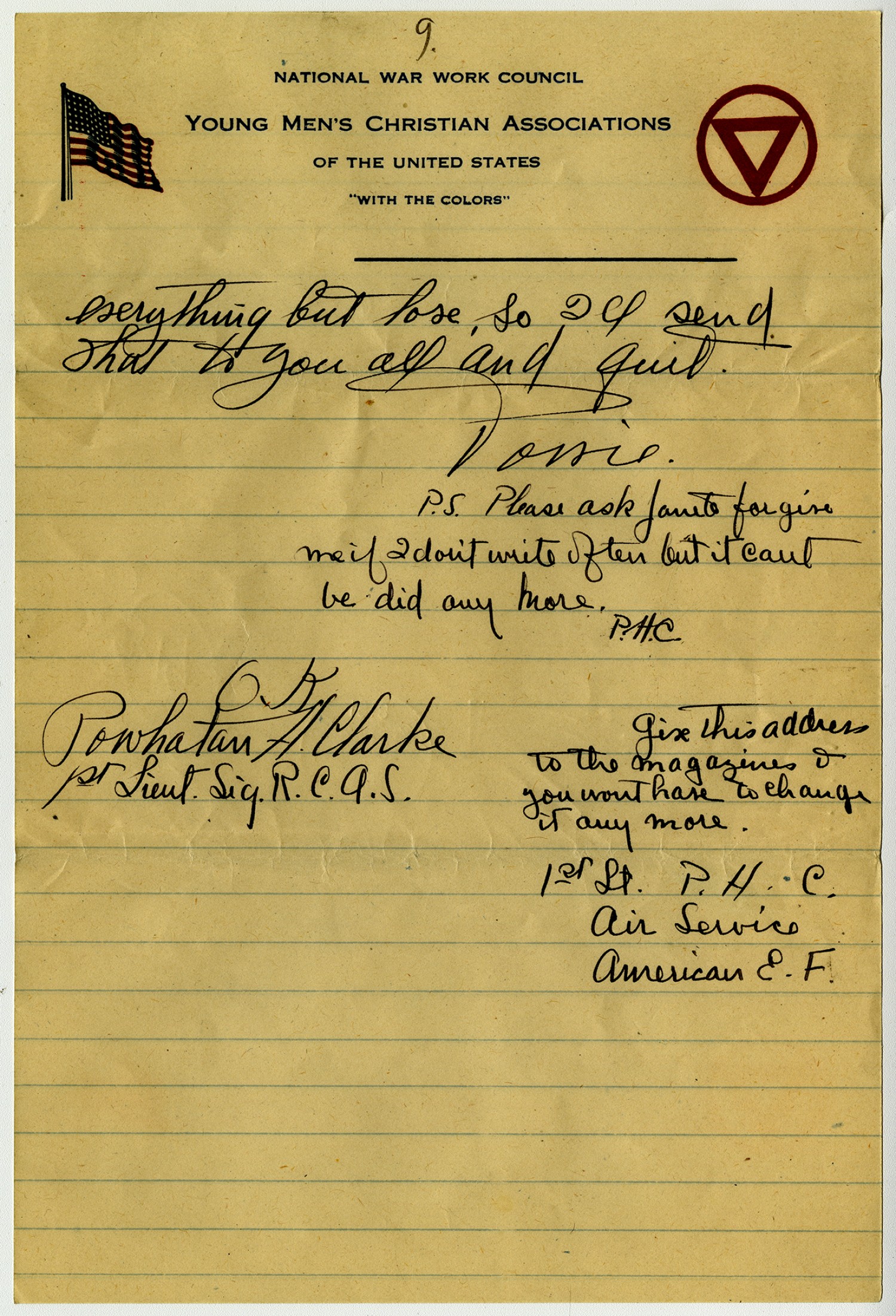 | Source | Clarke, Powhatan H. Letter to Mother. 07 May 1918. Clarke, Powhatan Papers. A0293. Missouri History Museum, Saint Louis, Missouri. |