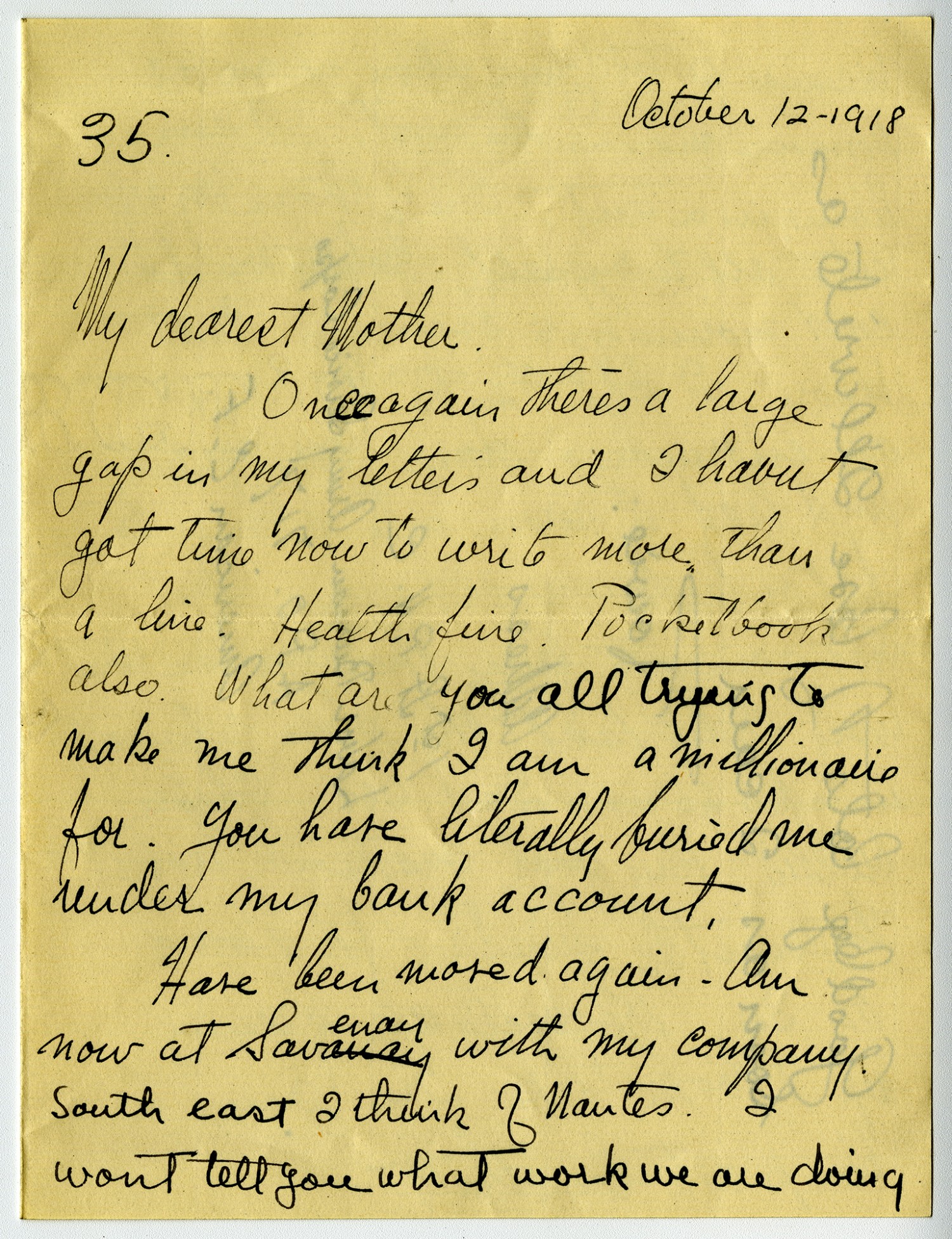 | Source | Clarke, Powhatan H. Letter to Mother. 12 October 1918. Clarke, Powhatan Papers. A0293. Missouri History Museum, Saint Louis, Missouri. |