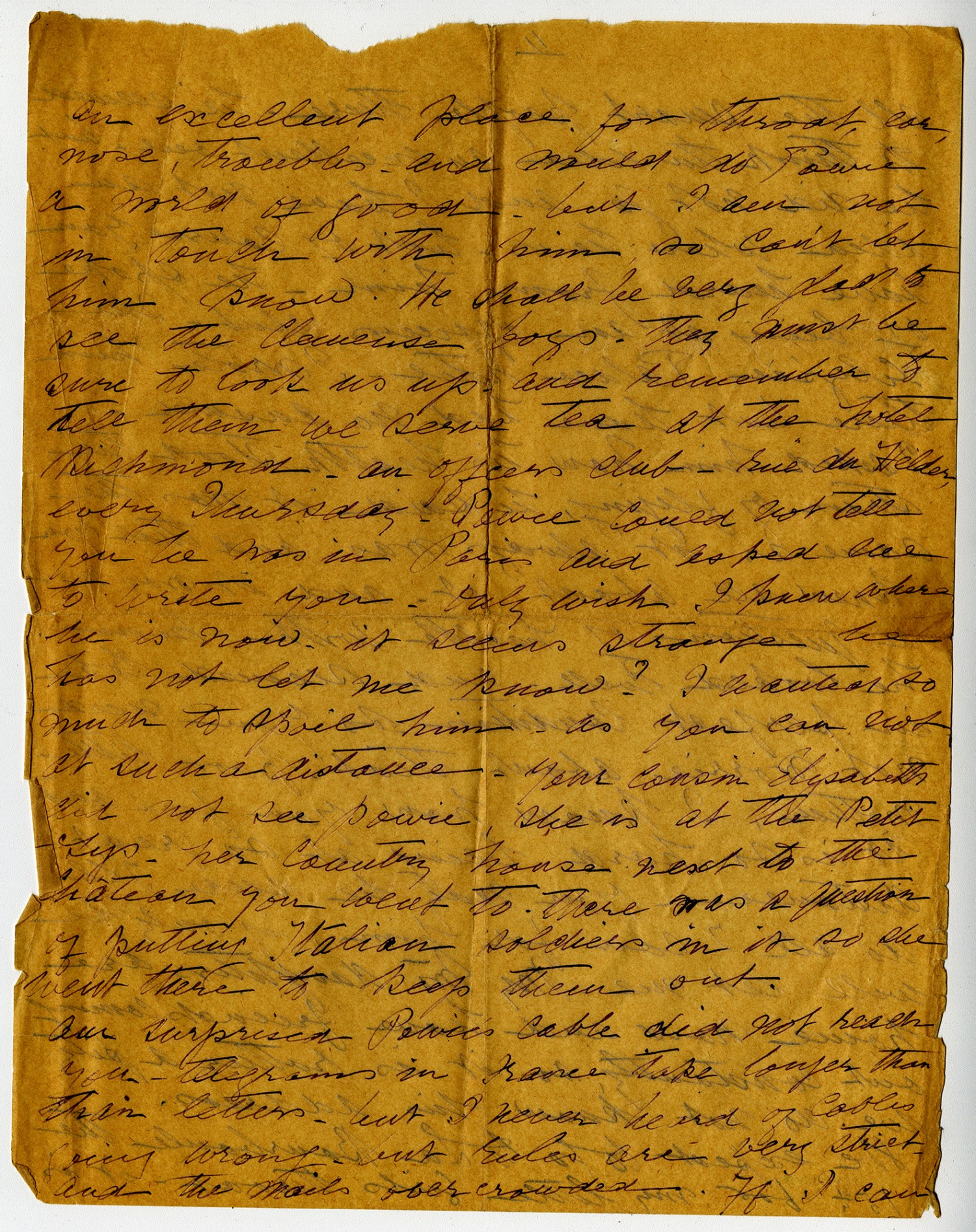 | Source | De Noue, Therese. Letter to Elsie. 05 August 1918. Clarke, Powhatan Papers. A0293. Missouri History Museum, Saint Louis, Missouri. |