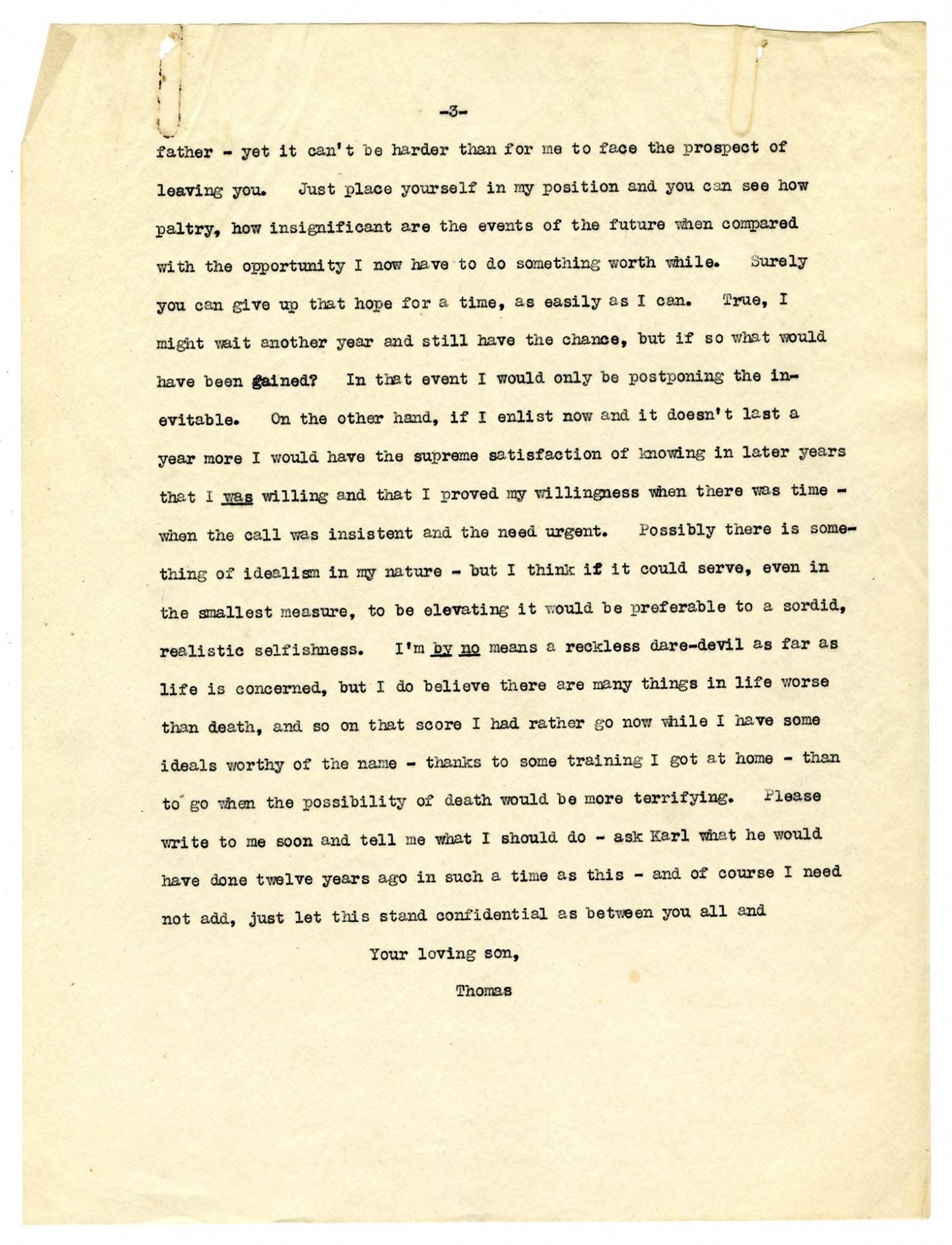 | Source | Thomas. Letter to Mother and Father. 3 April 1918. Crowder, Enoch H. (1859-1932), Papers, 1884-1942. C1046. The State Historical Society of Missouri, Columbia, MO. |