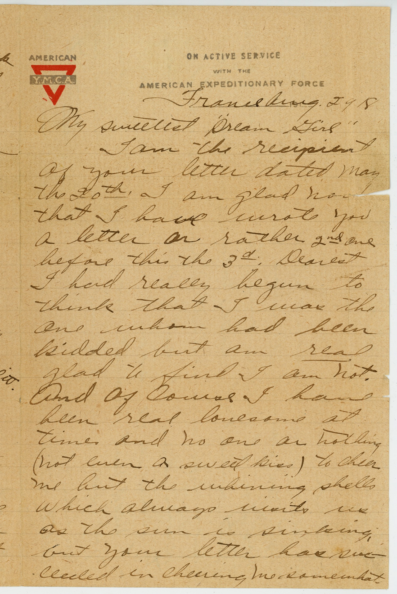 | Source | Dotson, Bill R. Letter to Agnita Fraas. 29 August 1918. Frank X. Fraas Collection. 2002.50. The National World War I Museum, Kansas City, Missouri. |