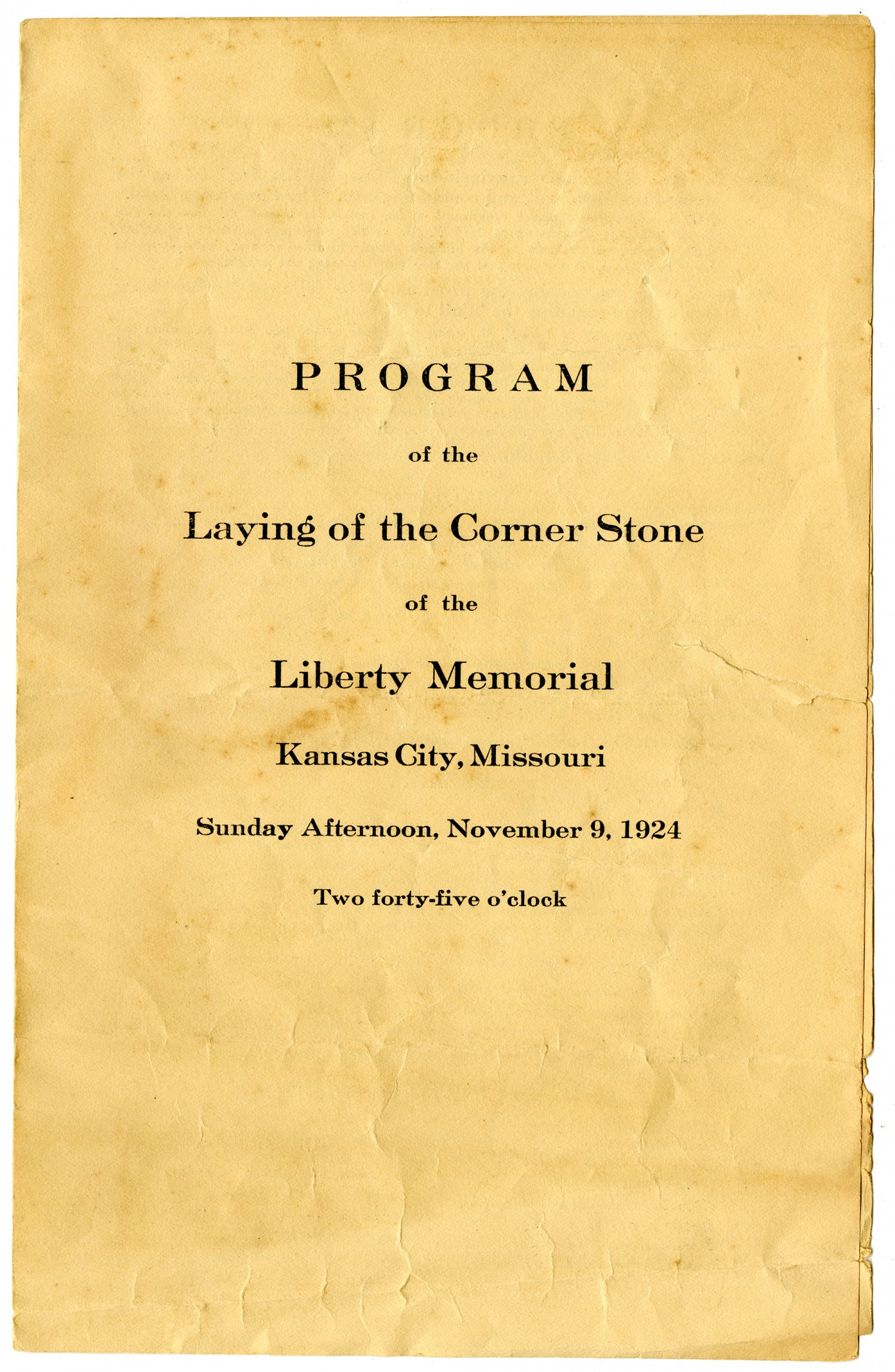 | Title | Program of the Laying of the Corner Stone of the Liberty Memorial - November 9, 1924 |