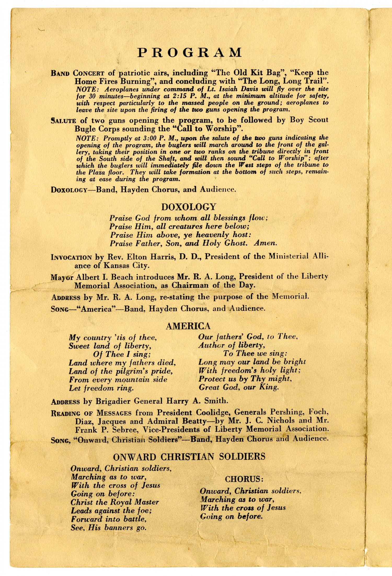 | Source | Unknown. Program of the Laying of the Corner Stone of the Liberty Memorial. 9 November 1924. Frank X. Fraas Collection. 2002.50. The National World War I Museum, Kansas City, Missouri. |