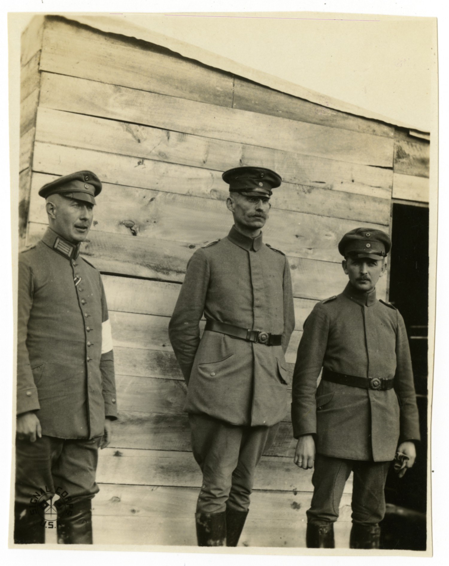 This photograph of three German soldiers is one of several Signal Corps photographs in a collection compiled by Ruby Garrett. Garrett, a Kanas City lawyer, served as Chief Signal Officer of the 117th Field Signal Battalion, 42nd Division, during World War I.