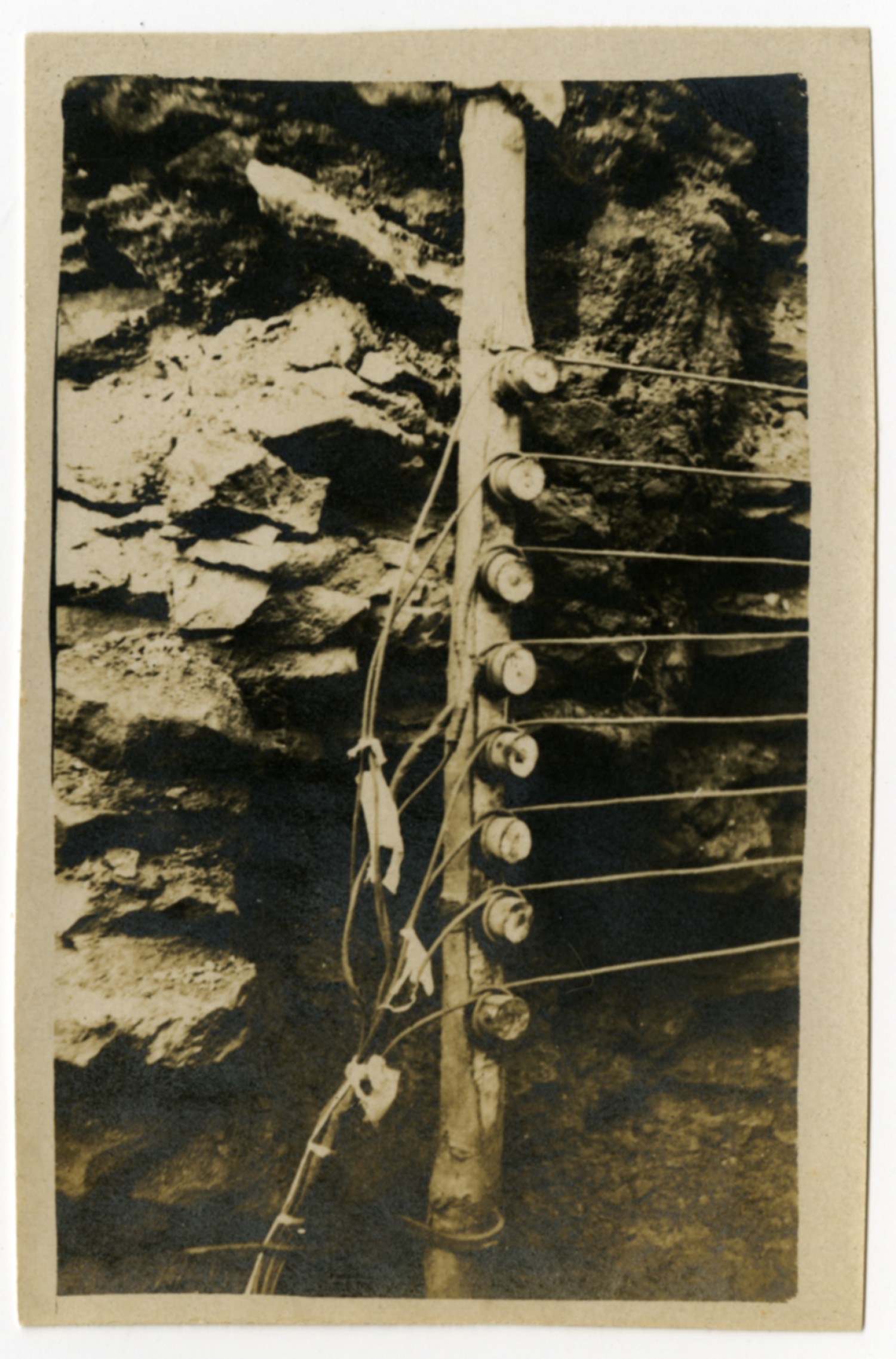 This photograph of telephone wires is part of a collection compiled by Ruby Garrett. Garrett, a Kansas City, Missouri lawyer, served as Chief Signal Officer in the 42nd Division during World War I.
