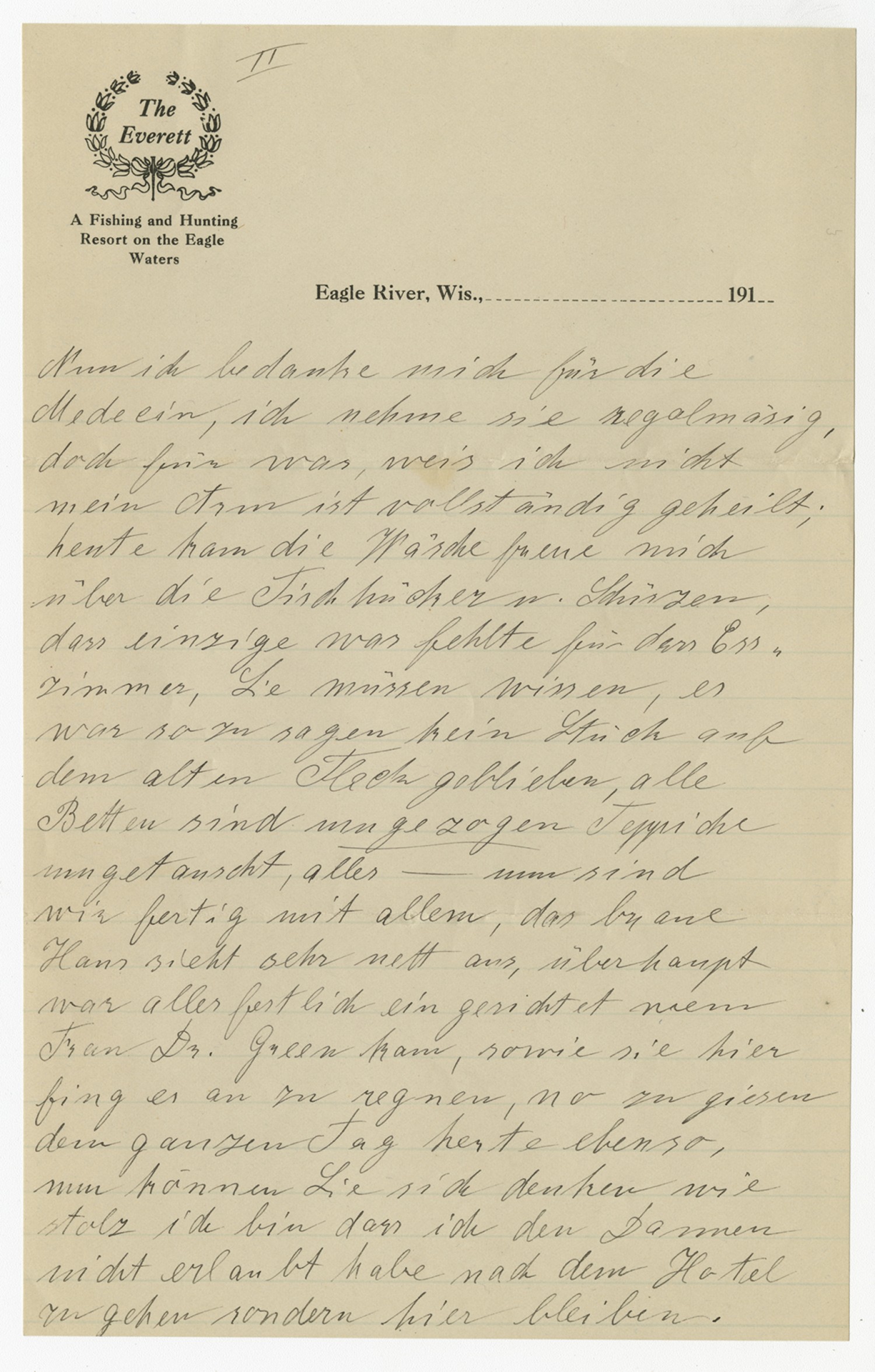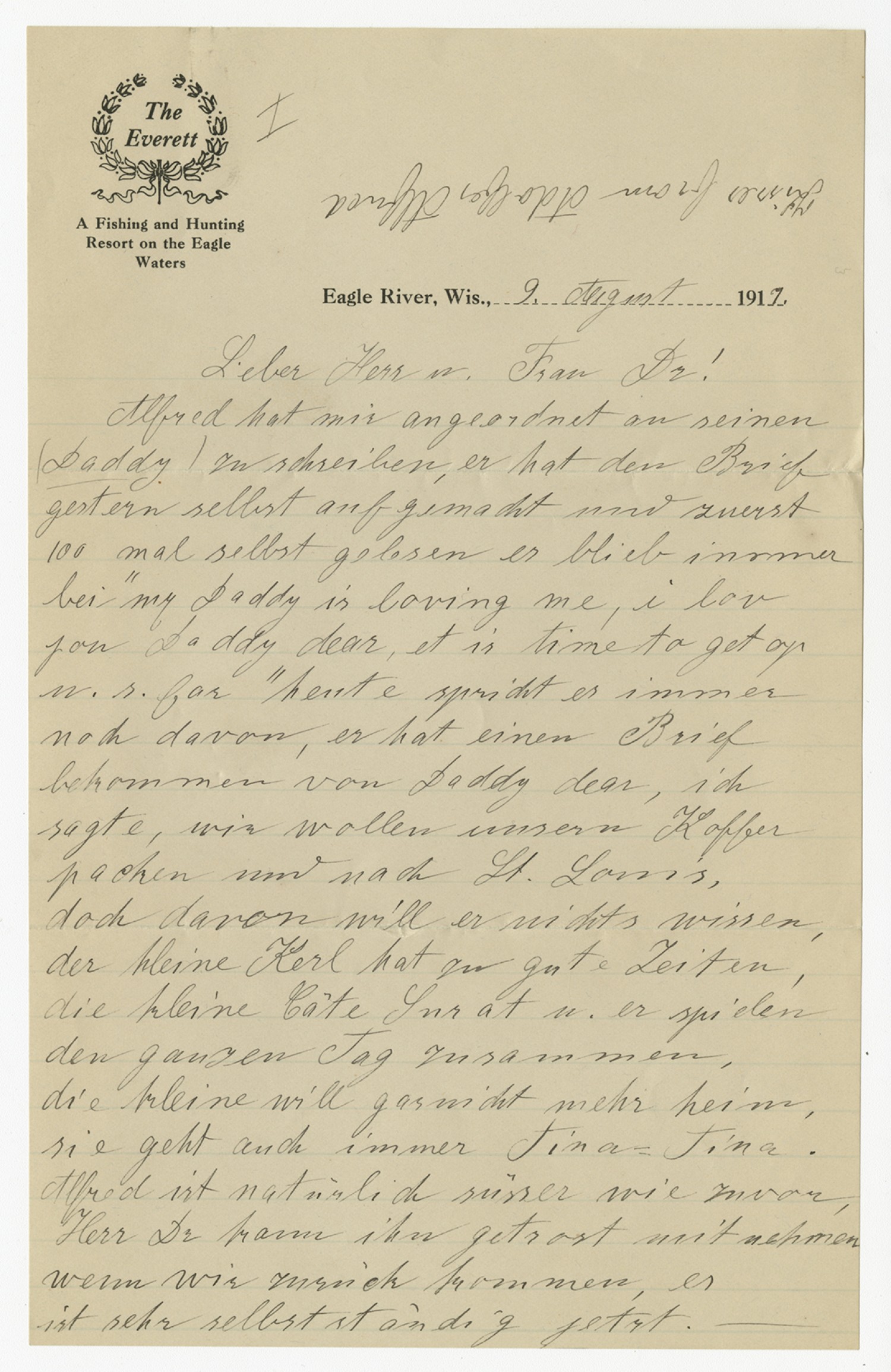 [The Everett letterhead] Eagle River, [Wisconsin] 1917 [German letter]