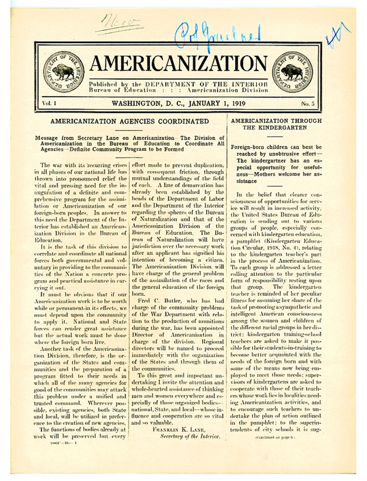 | Title | Americanization - January 1, 1919 |