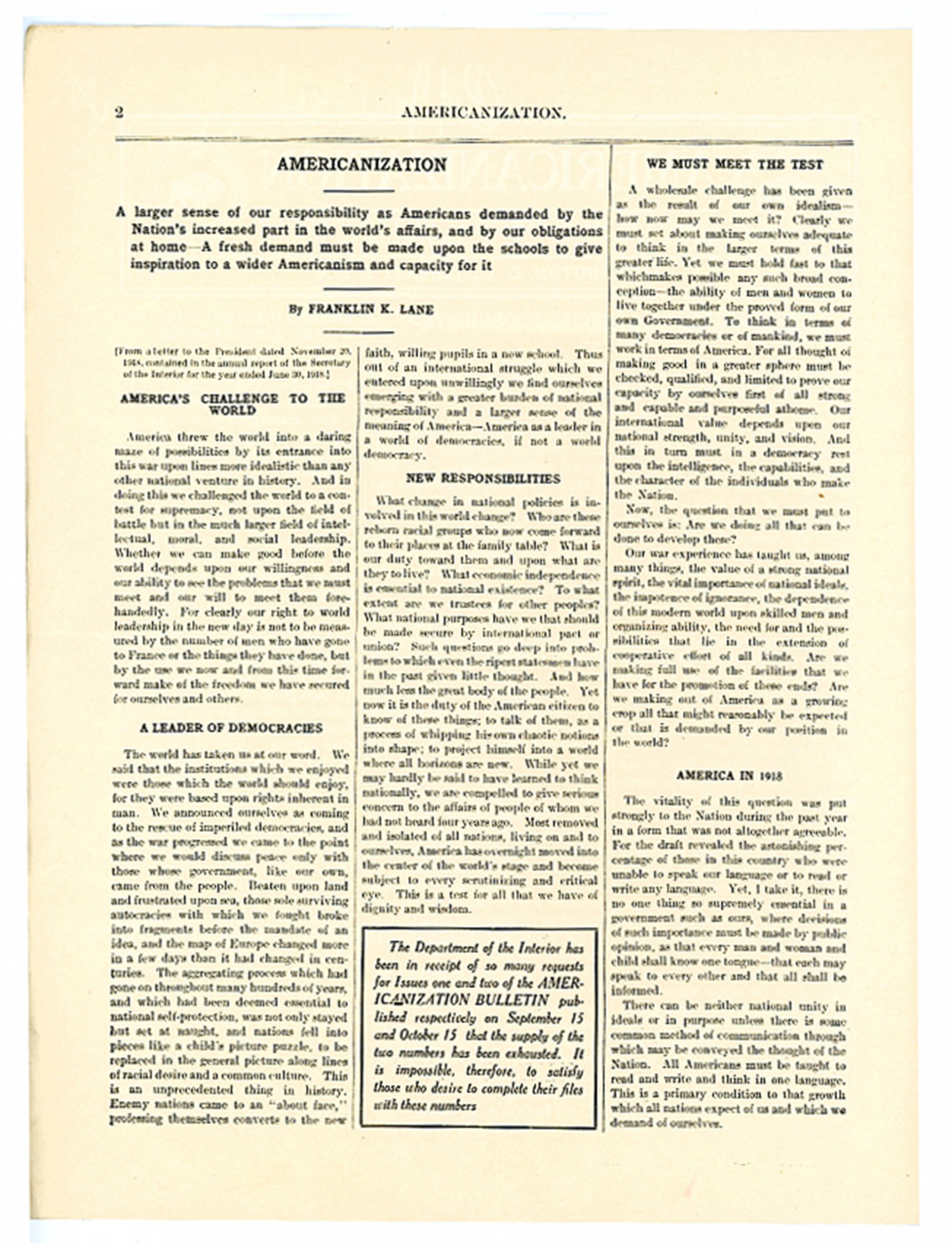 Americanization - January 1, 1919