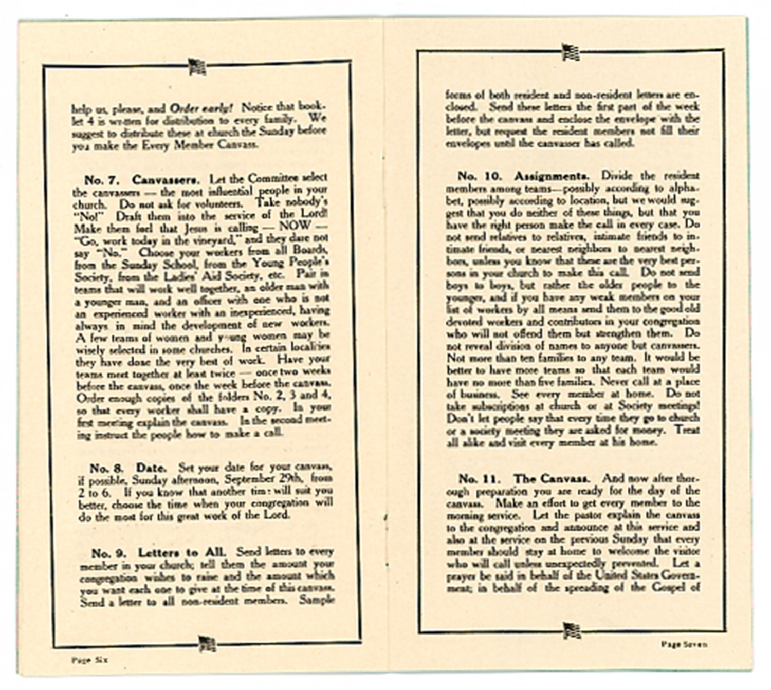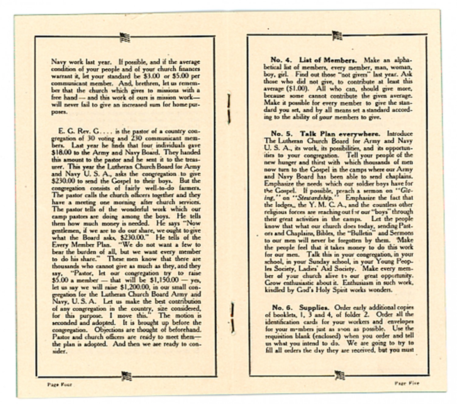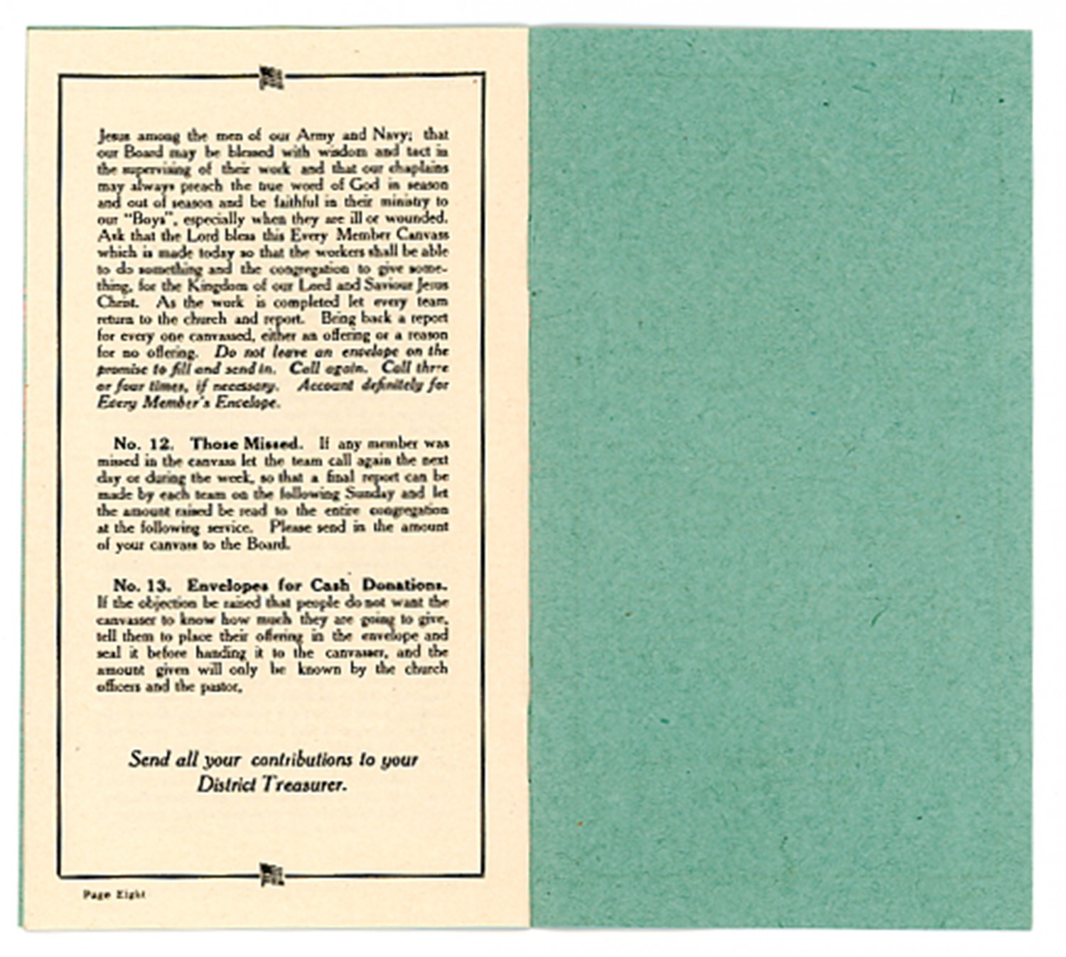 | Source | The Lutheran Church Board for Army and Navy. The Every Member Plan Every Member Canvass ca. 1918. Graebner, Theodore Collection. Concordia Historical Institute, St. Louis, Missouri. |